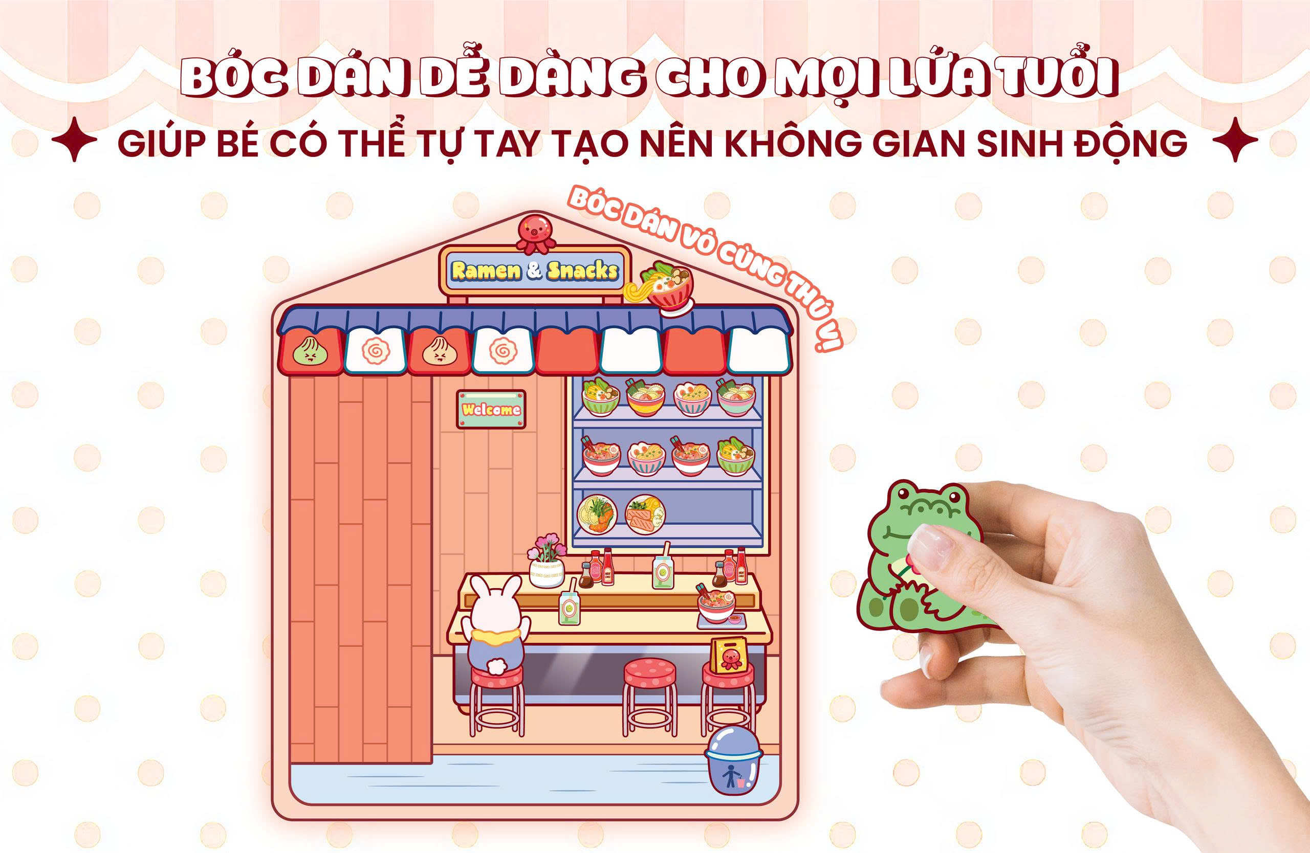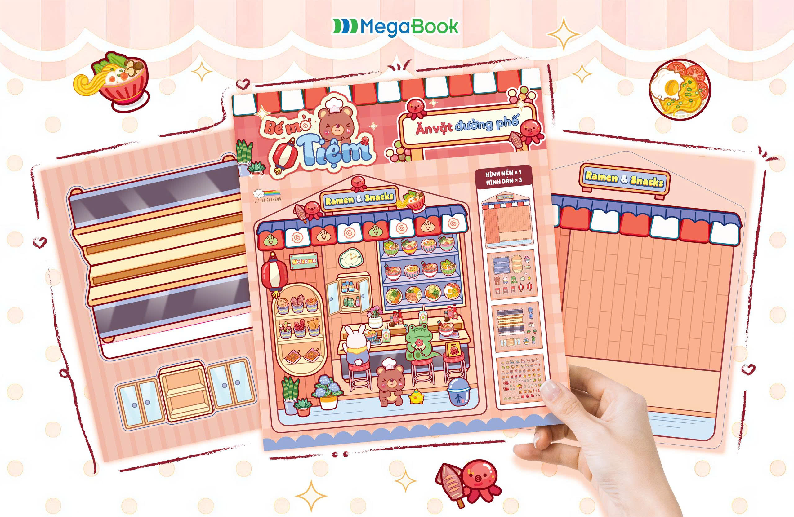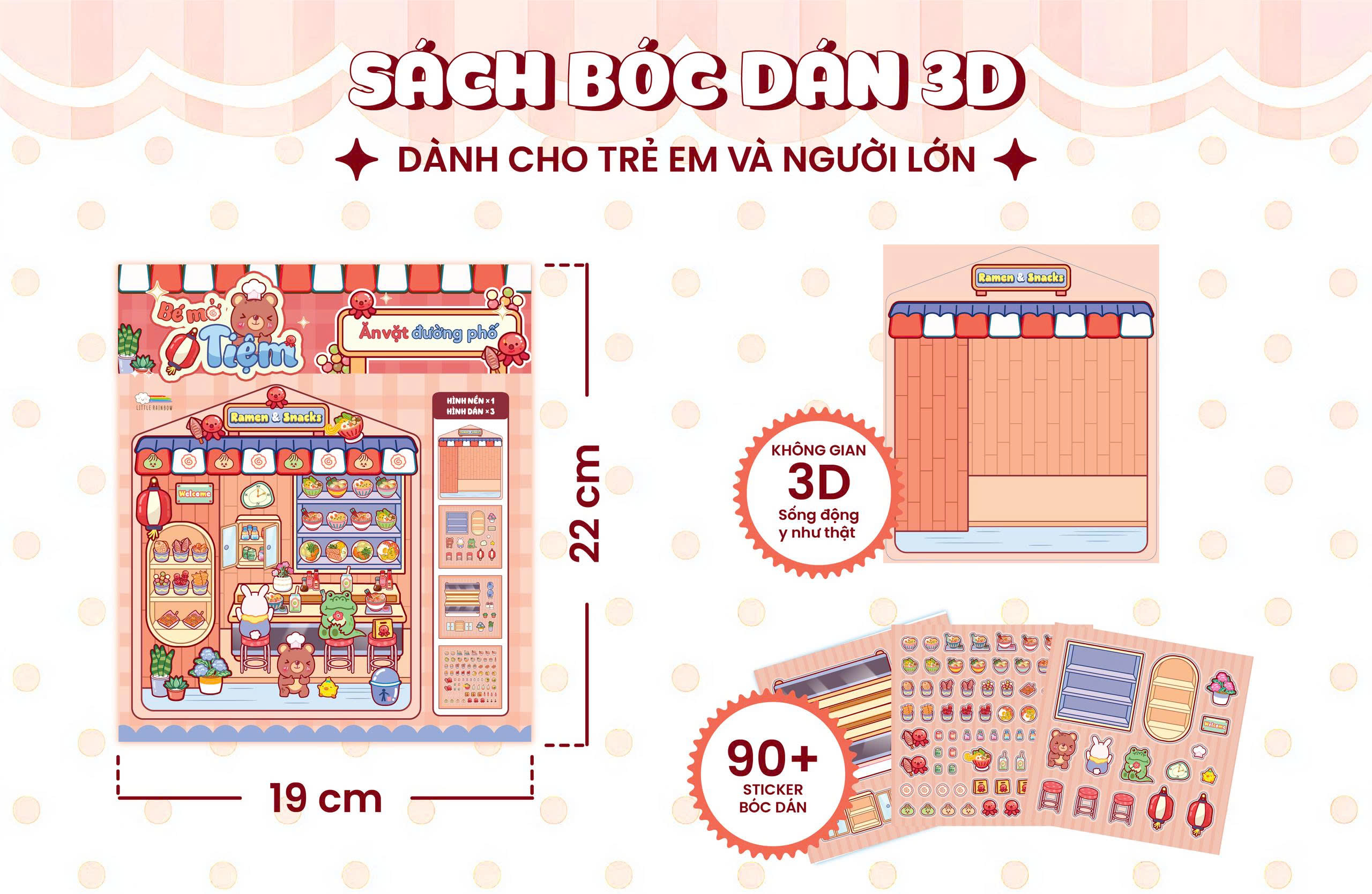 Mời bạn khám phá bộ Sách Bóc Dán Bé Mở Tiệm độc đáo, trò chơi bóc dán tuyệt vời cho mọi lứa tuổi! Bộ sách gồm 5 cuốn với 5 chủ đề siêu đáng yêu như Cắt tóc thời trang, Tạp hoá 24h, và Bánh kẹo ngọt ngào. Mỗi cuốn là một không gian 3D sống động, giúp bé tha hồ nhập vai thành cô/cậu chủ tài ba. Với hơn 90+ Sticker bóc dán trong suốt đi kèm, bé có thể tự tay trang trí, kiến tạo tiệm kinh doanh mơ ước.