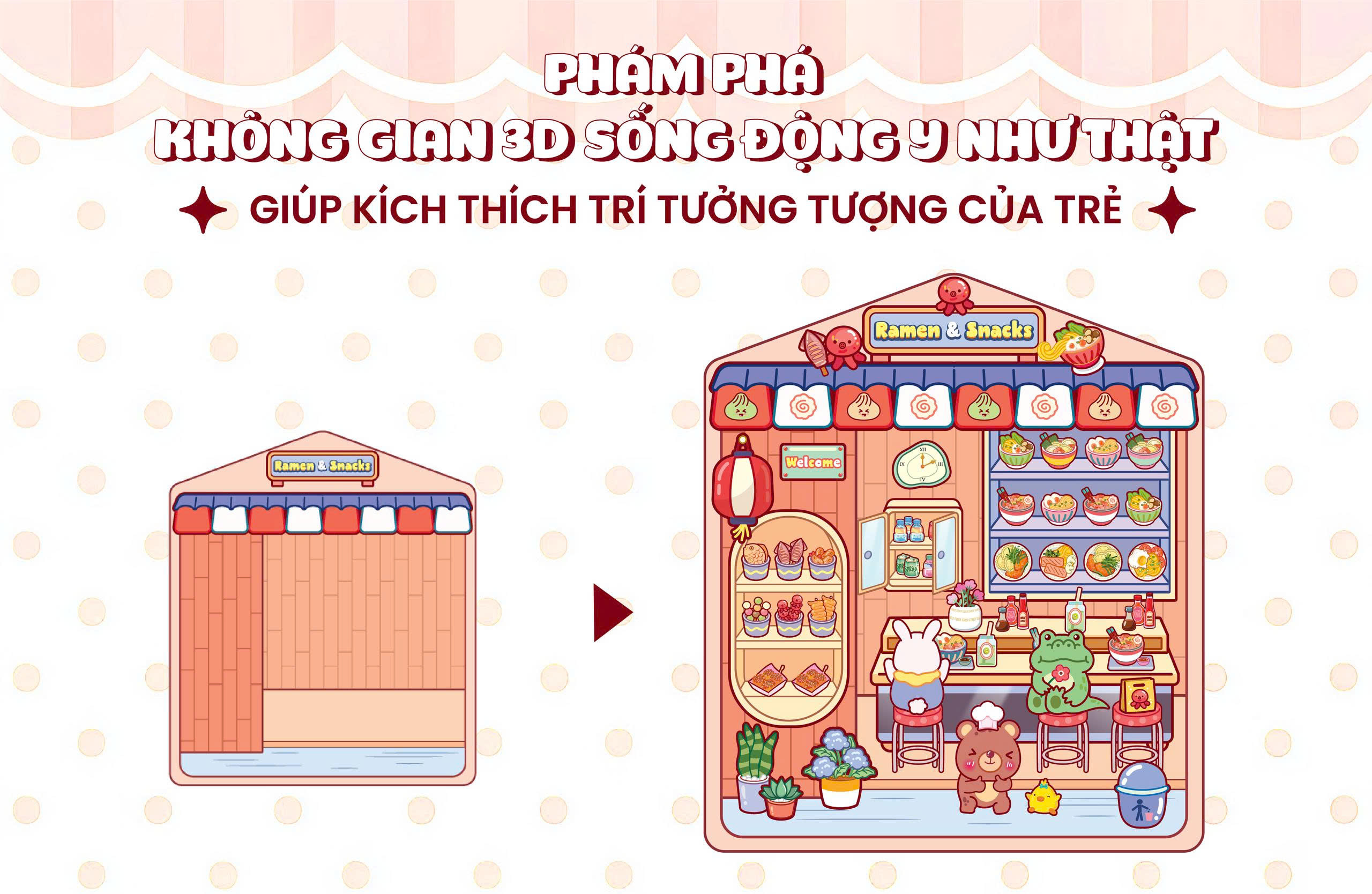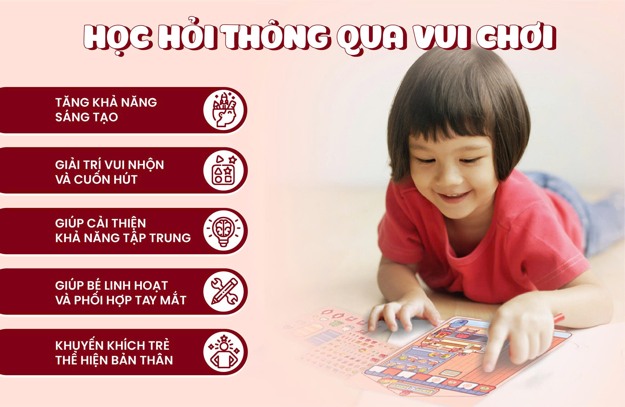 Trò chơi không chỉ mang lại niềm vui giải trí, mà còn giúp bé rèn luyện sự khéo léo của đôi tay, phát triển tư duy logic và kích thích trí tưởng tượng bay bổng. Đây là món quà hoàn hảo để cùng con học và chơi!