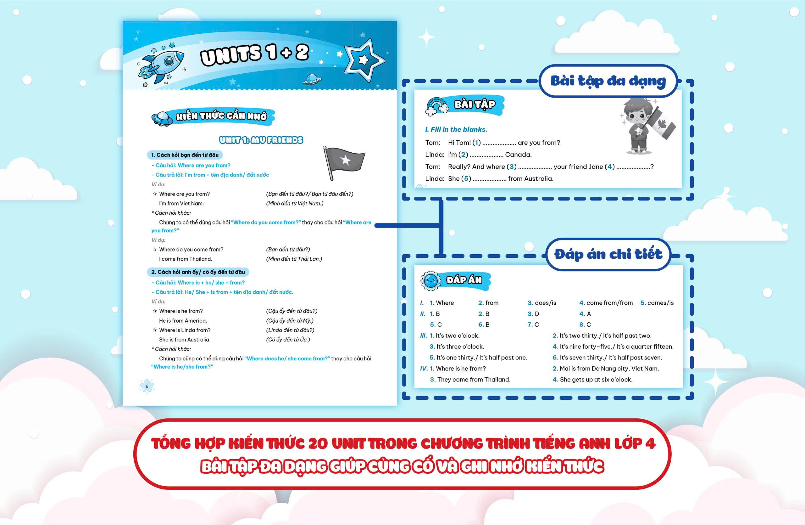 2. Tổng hợp và mở rộng toàn bộ kiến thức với 20 Unit của chương trình học tiếng Anh lớp 4 theo Bộ Giáo dục & Đào tạo.