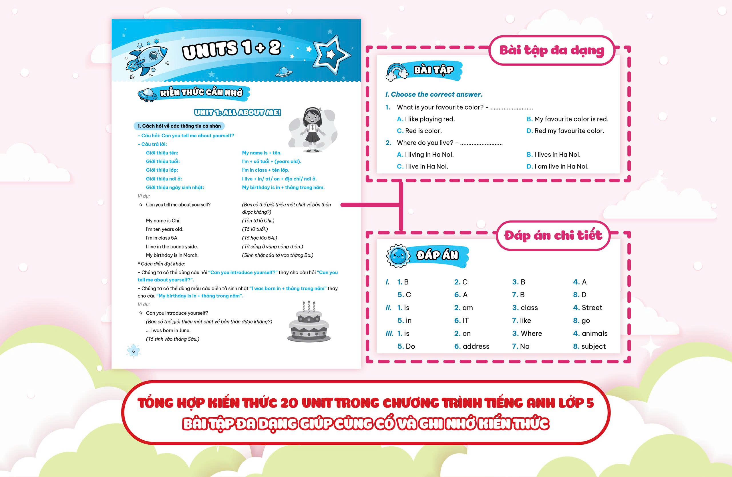2. Tổng hợp và mở rộng toàn bộ kiến thức với 20 Unit của chương trình học tiếng Anh lớp 5 theo Bộ Giáo dục & Đào tạo.