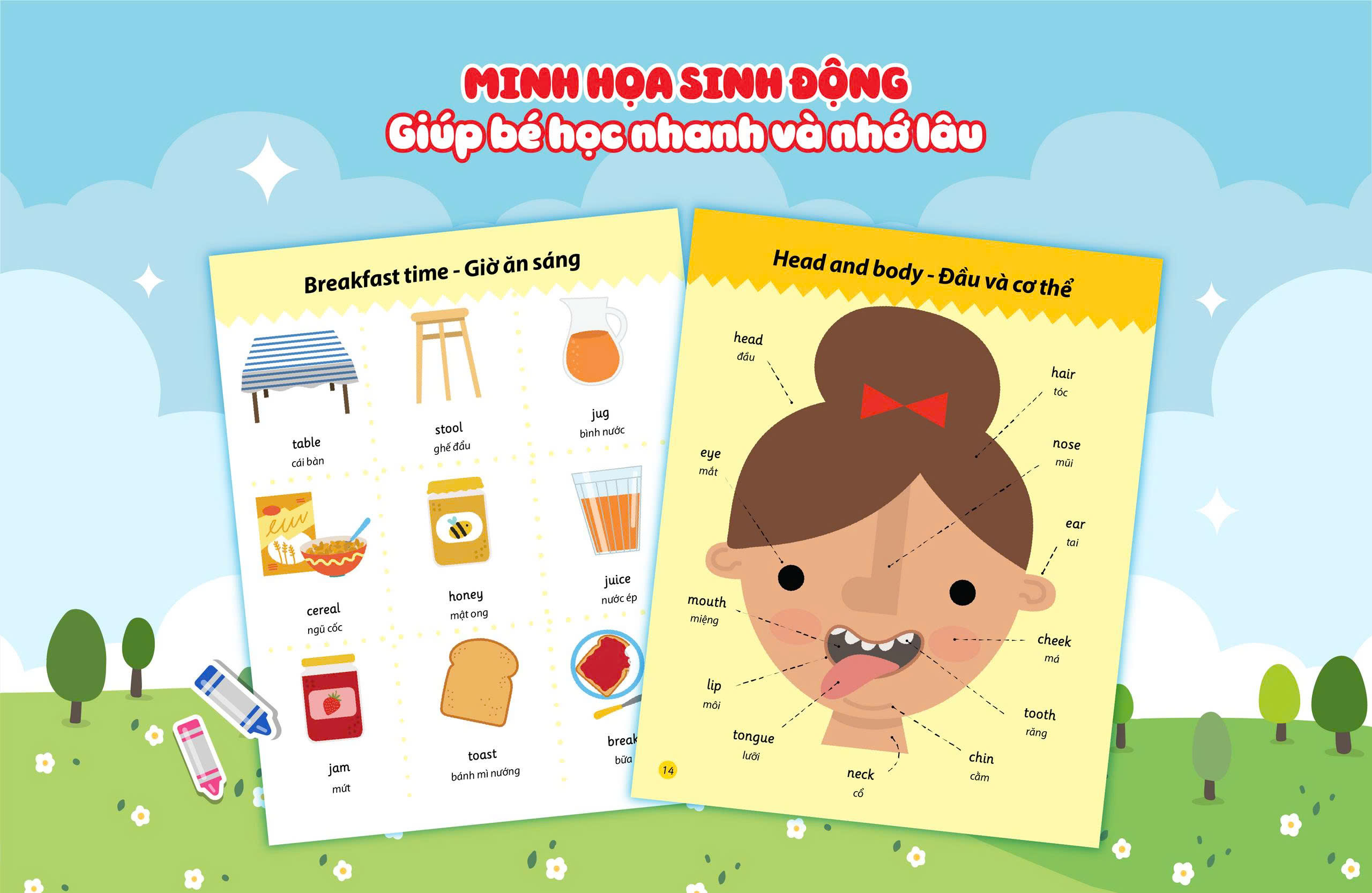 - Cuốn sách như 1 cuốn từ điển tra cứu với hình ảnh sinh động, giúp bé học nhanh và nhớ lâu