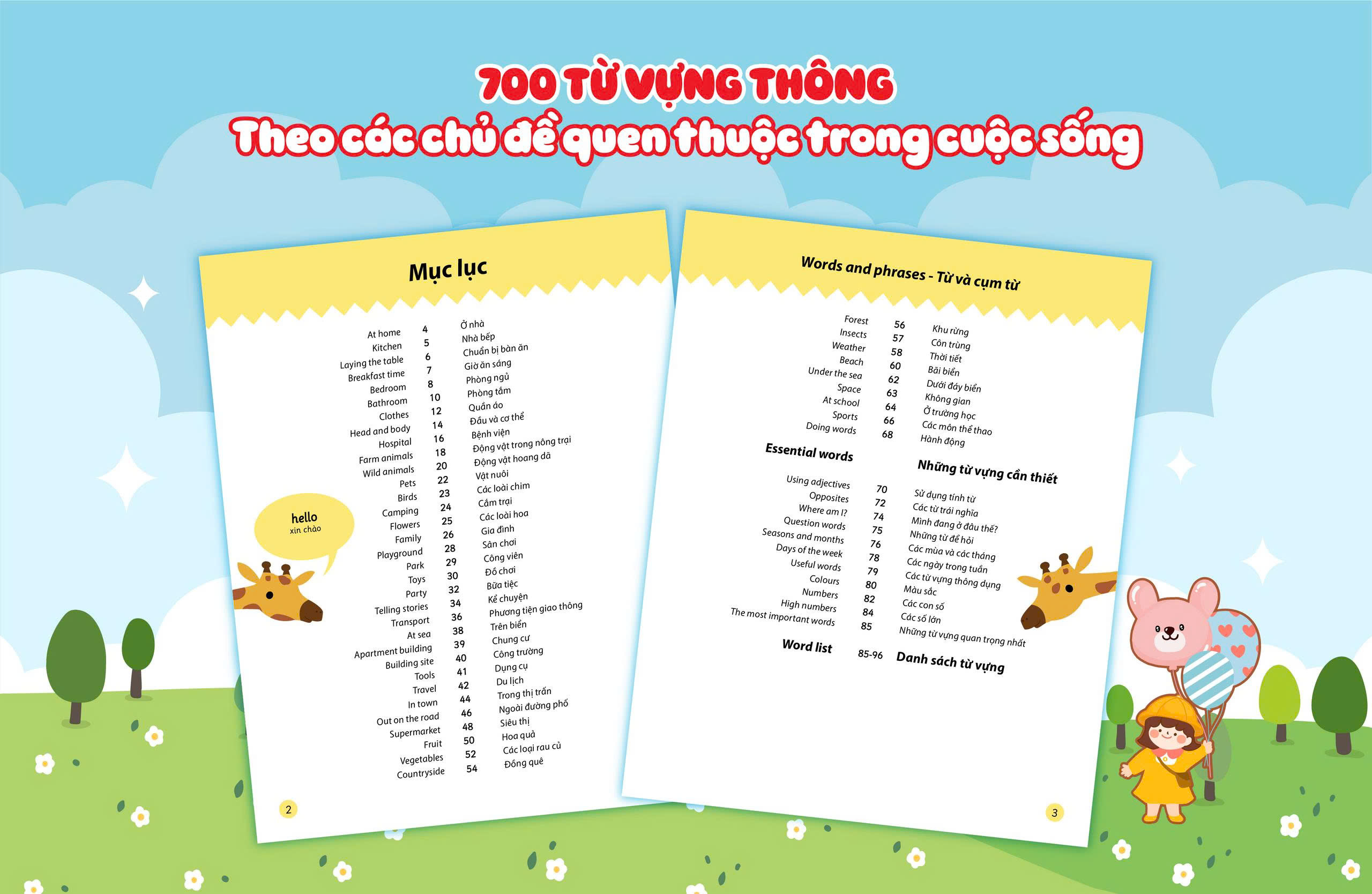 Từ vựng là yếu tố cốt lõi để giúp bé giao tiếp tiếng Anh tốt. Để học từ vựng dễ dàng và hiệu quả, bố mẹ nên phân chia theo chủ đề để bé ghi nhớ dễ dàng, tránh bị quá tải. Bộ sách Cẩm nang từ vựng tiếng anh cho trẻ em cùng với 700 từ thông dụng theo chủ đề sẽ giúp bé chinh phục tiếng Anh dễ dàng tại nhà.