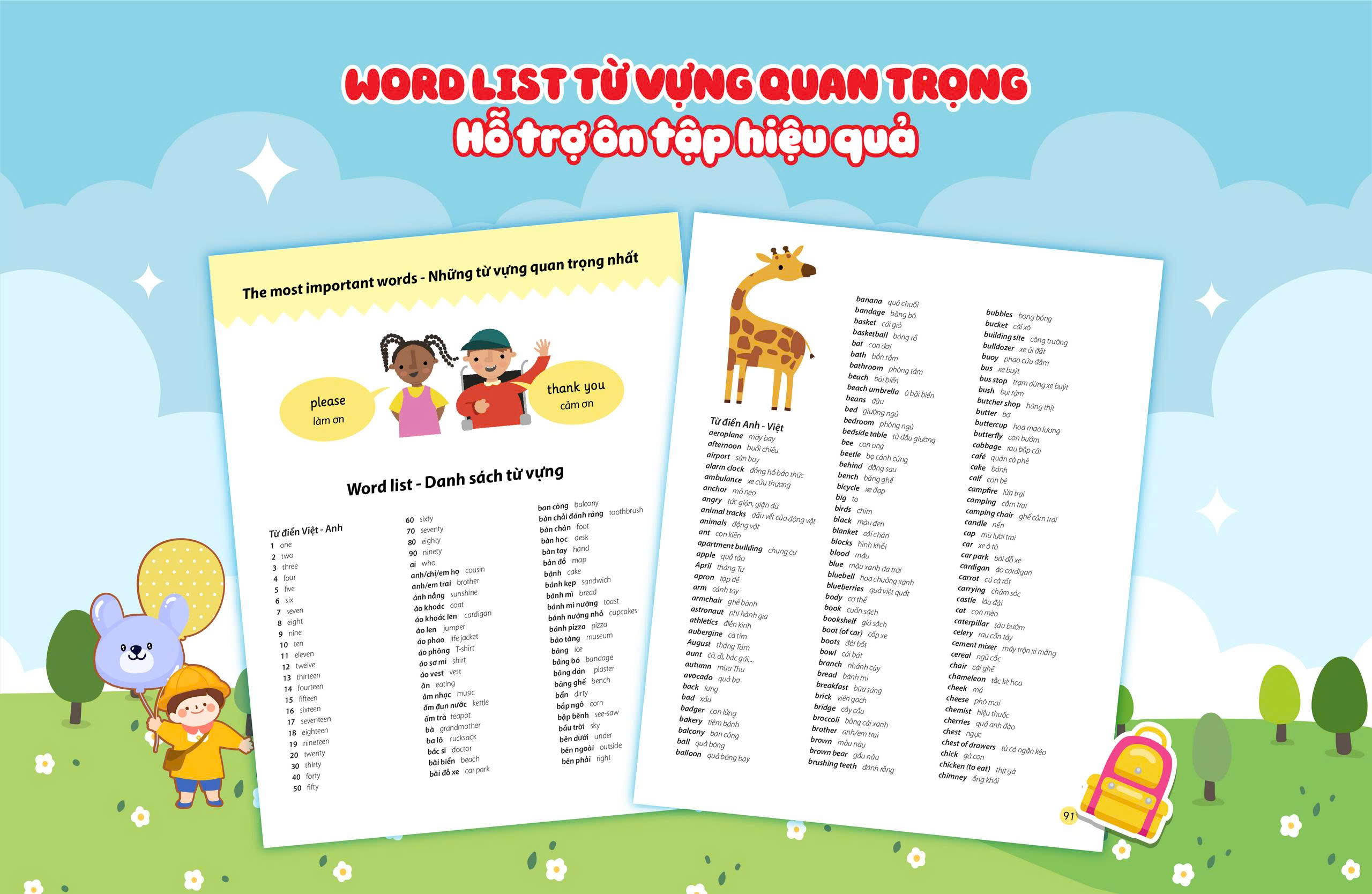 - Sách cung cấp hệ thống word – list : những từ vựng quan trọng nhất giúp bé có thể nhanh chóng tra từ khi cần thiết