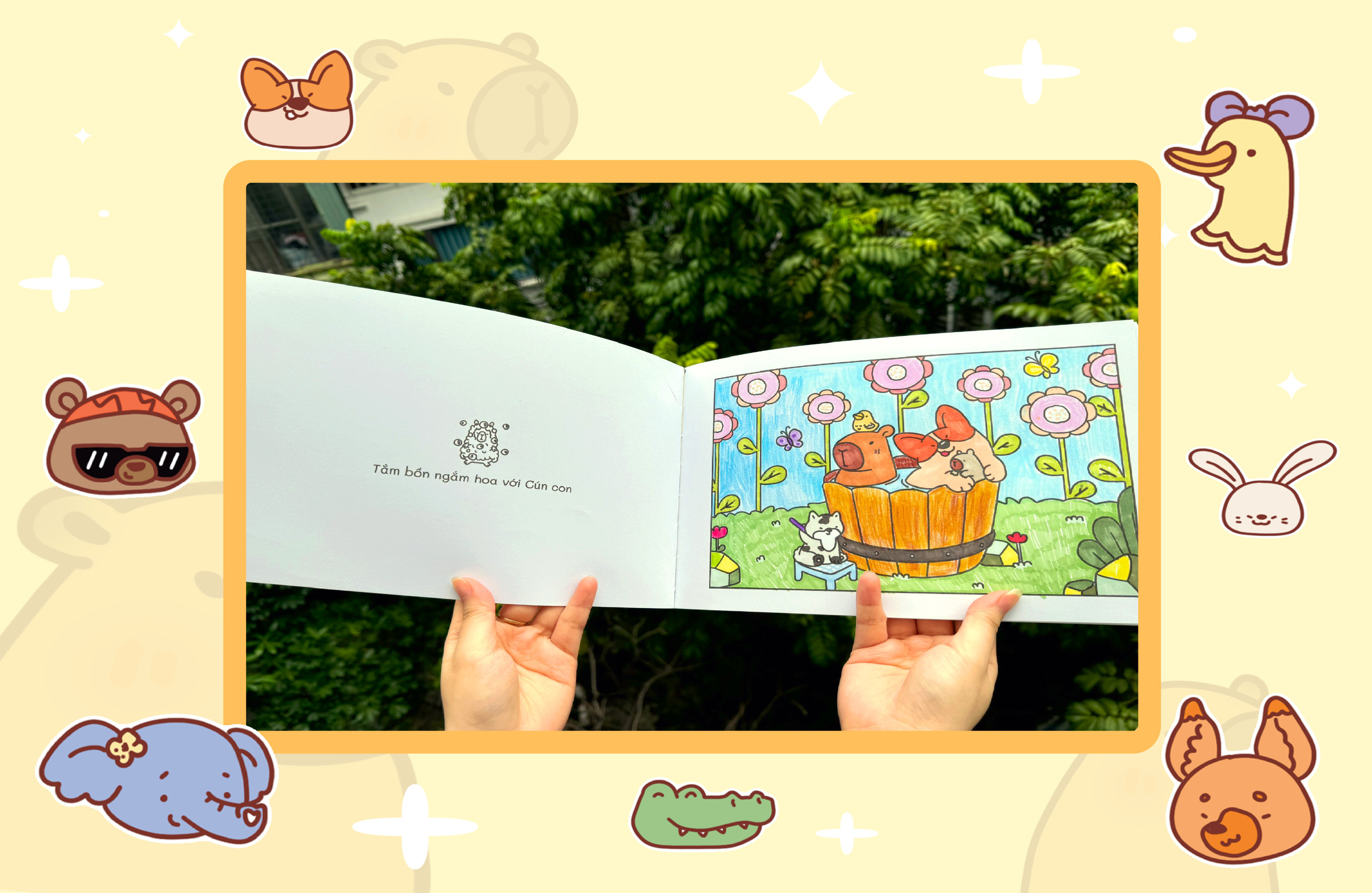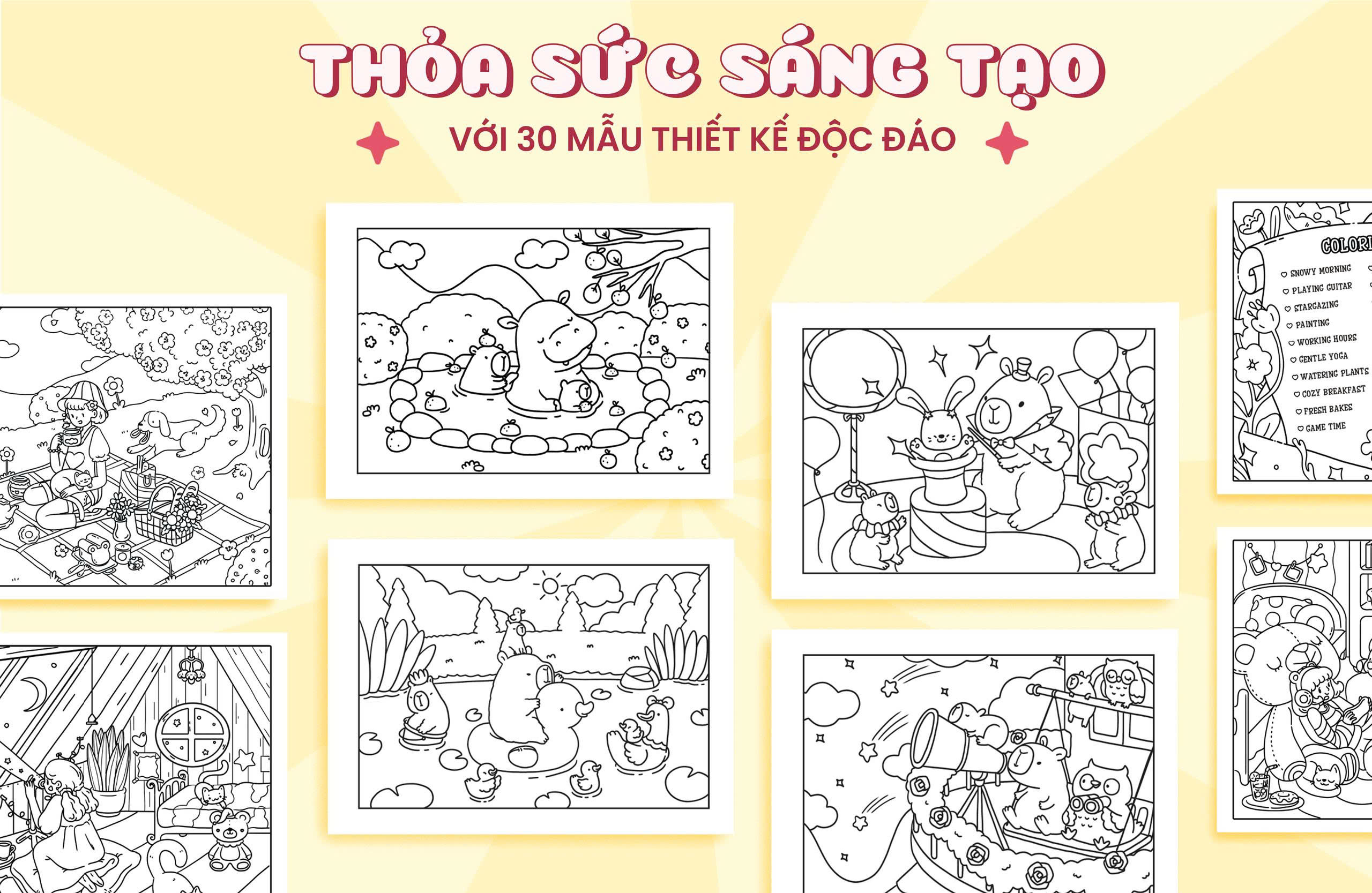 - Với 30 chủ đề tô màu phong phú đa dạng, mỗi bức tranh là một hoạt động đầy vui nhộn của Capy cùng bè bạn