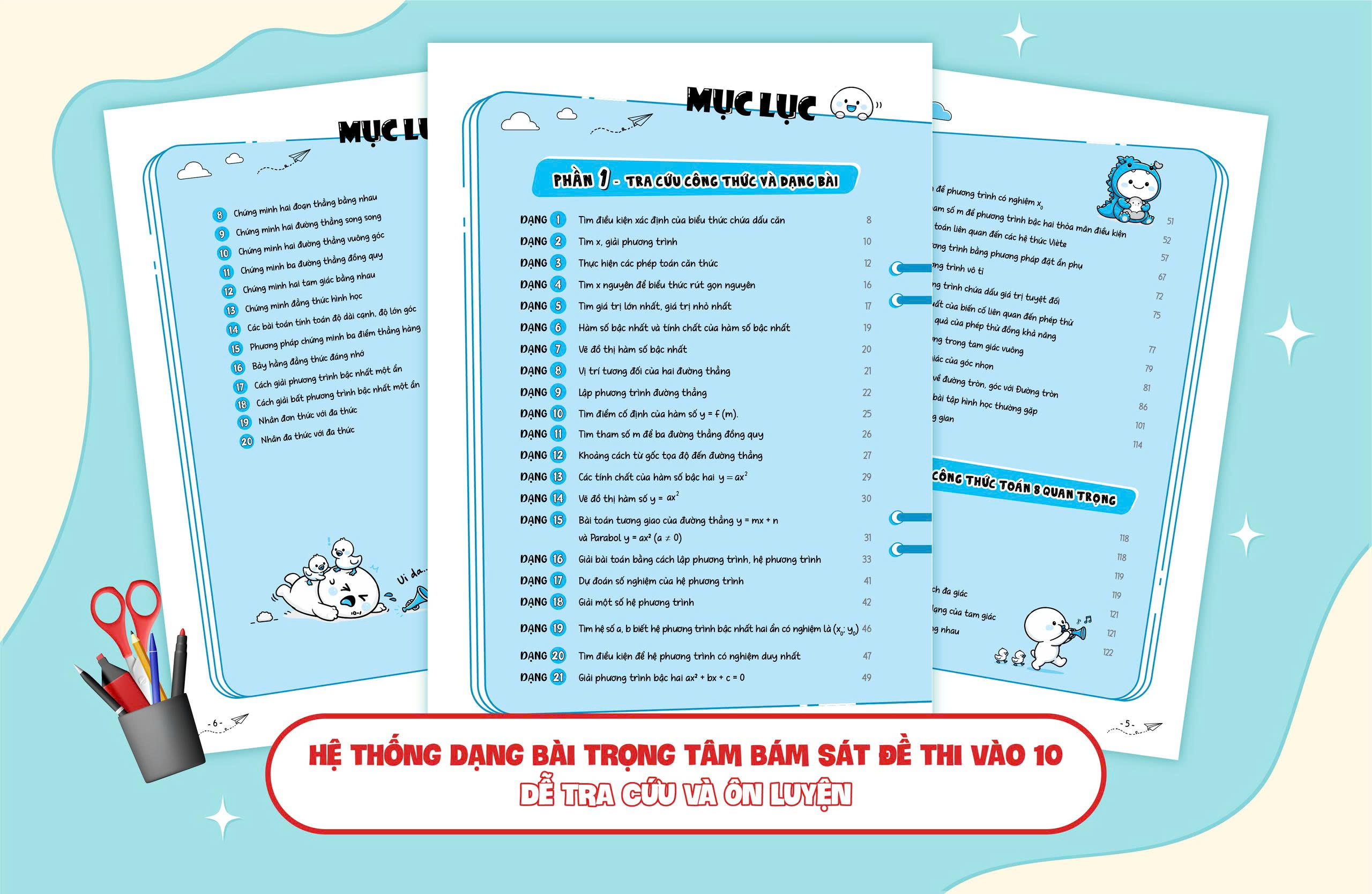 Điểm khác biệt của cuốn sách nằm ở định hướng học tập: rèn luyện khả năng phân tích đề, nhận diện dạng bài và lựa chọn phương pháp giải phù hợp. Nhờ đó, học sinh có thể tự học hiệu quả, xây dựng nền tảng vững chắc và tự tin chinh phục các bài toán từ cơ bản đến vận dụng cao trong kỳ thi vào lớp 10.