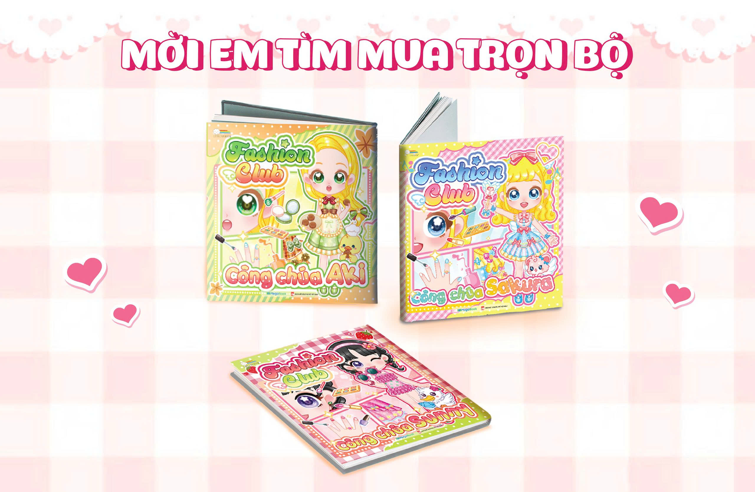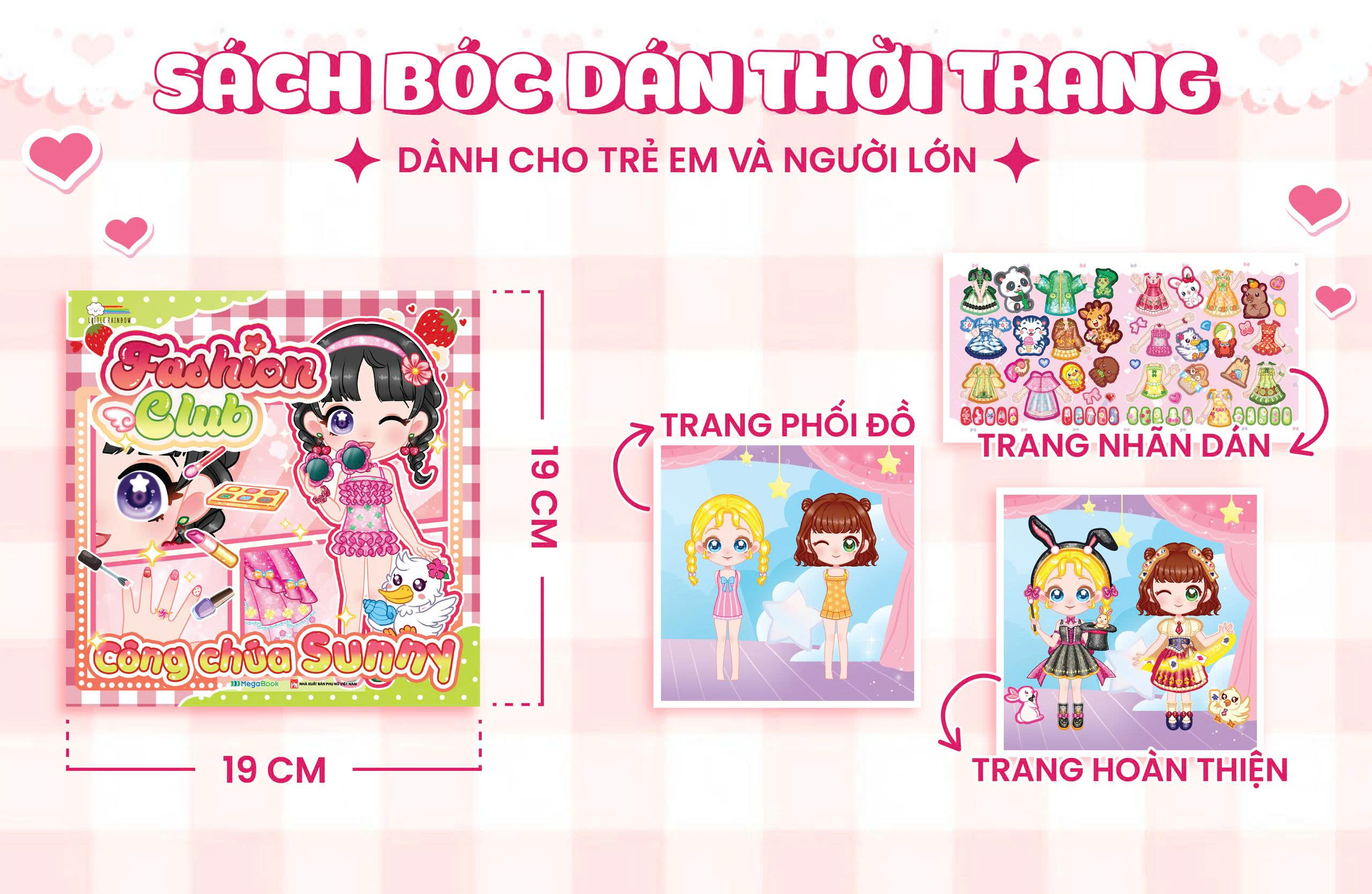 Bộ sách bóc dán Fashion Club gồm 3 cuốn: Công chúa Aki, Công chúa Sunny và Công chúa Sakura, mang đến thế giới thời trang đầy màu sắc cho các bé yêu làm đẹp. Mỗi cuốn có 18 nàng công chúa xinh xắn cùng 200+ sticker bóc dán đa dạng từ váy áo, giày dép, phụ kiện đến nail và trang sức. Bé có thể thỏa sức trang điểm, phối đồ và sáng tạo phong cách riêng cho từng công chúa, vừa chơi vừa khơi gợi trí tưởng tượng và gu thẩm mỹ ngay từ nhỏ.