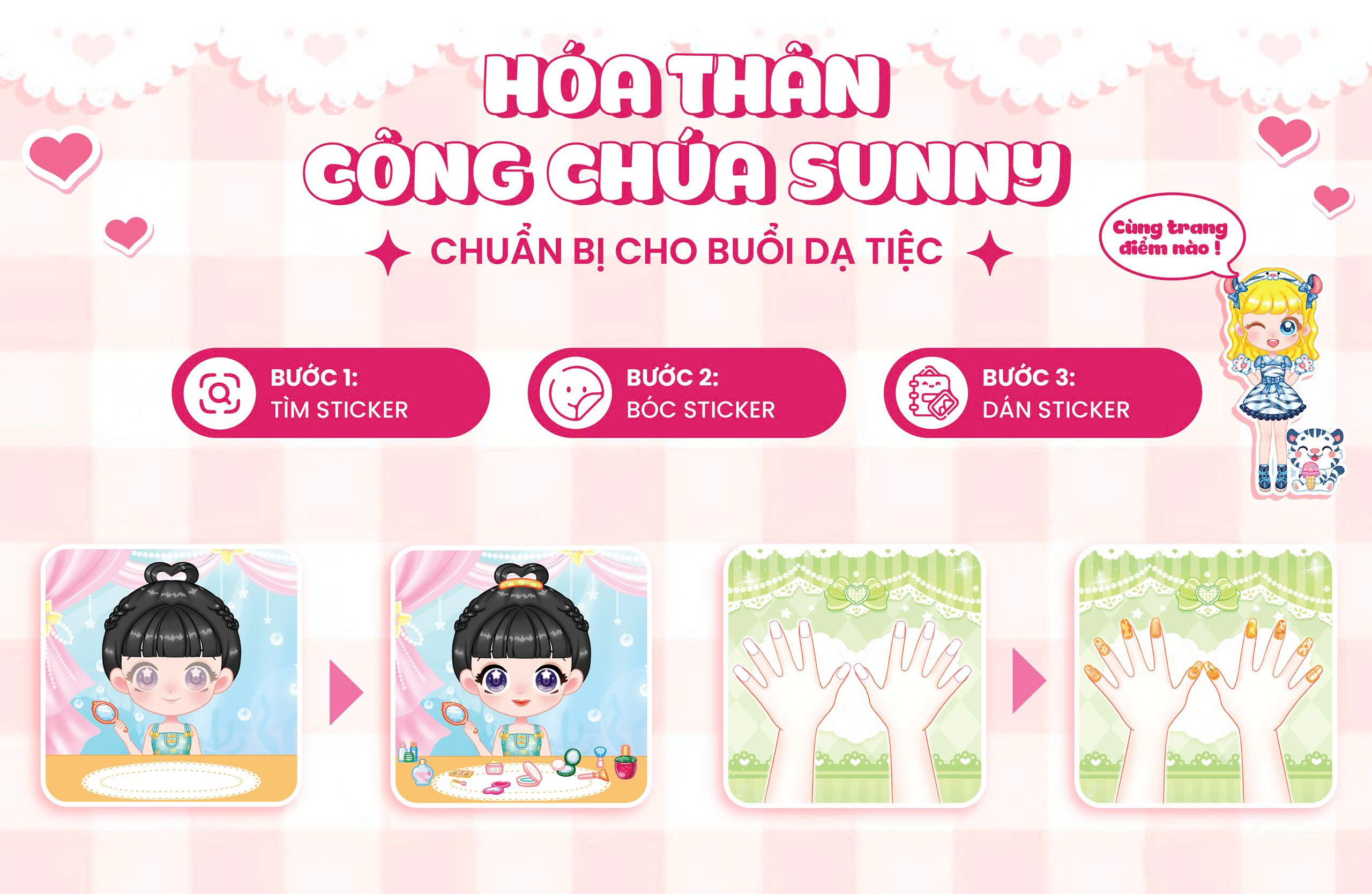 200+ sticker thời trang đa dạng: Váy, giày, túi, phụ kiện, nail… giúp bé phối đồ không giới hạn.