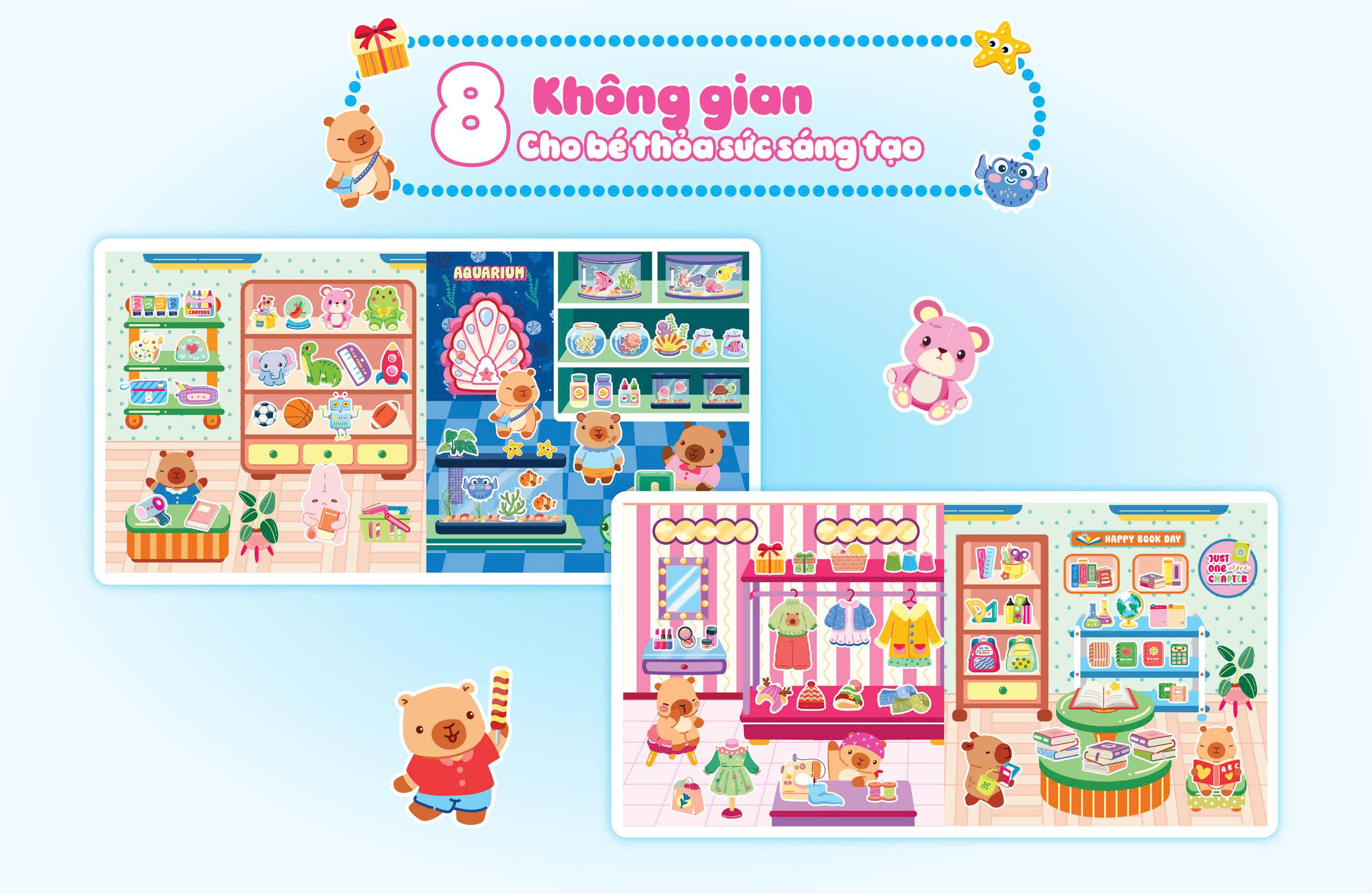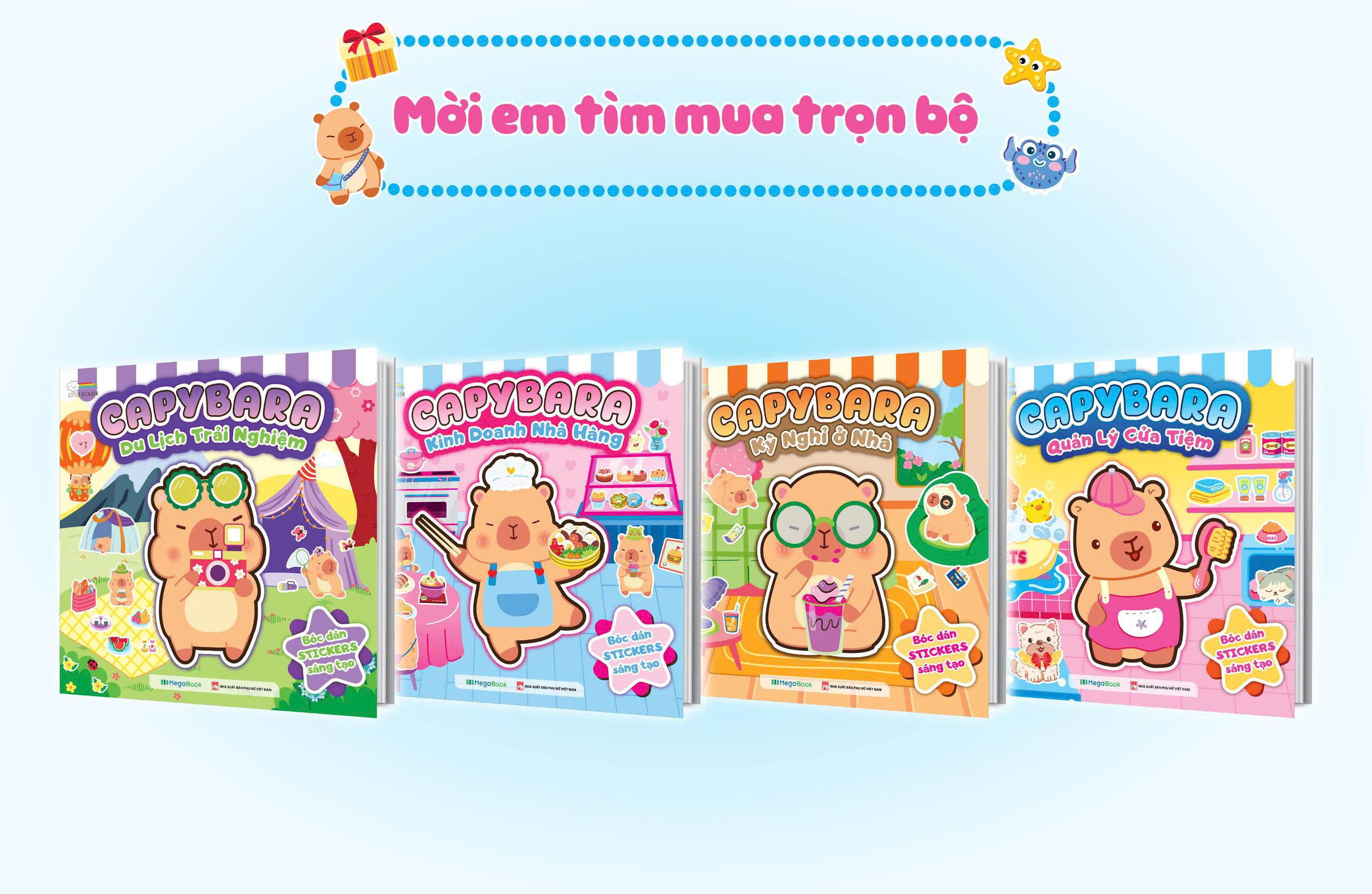 Khơi dậy trí tưởng tượng và sự sáng tạo của bé với bộ trò chơi bóc dán sticker Capybara! Bộ sản phẩm gồm 4 cuốn thú vị: Du lịch trải nghiệm, Kỳ nghỉ ở nhà, và Kinh doanh nhà hàng và Quản lý cửa tiệm, mang đến cho bé cơ hội khám phá thế giới, tổ chức kỳ nghỉ sáng tạo, và trở thành "chủ nhà hàng nhí." Với hàng trăm sticker đa dạng và đầy màu sắc, bé có thể tự do sáng tạo, nhập vai và phát triển kỹ năng kể chuyện. Đây không chỉ là trò chơi mà còn là hành trình học hỏi, giúp bé rèn luyện sự khéo léo và trí tưởng tượng phong phú. Capybara – Người bạn sáng tạo của mọi em bé!