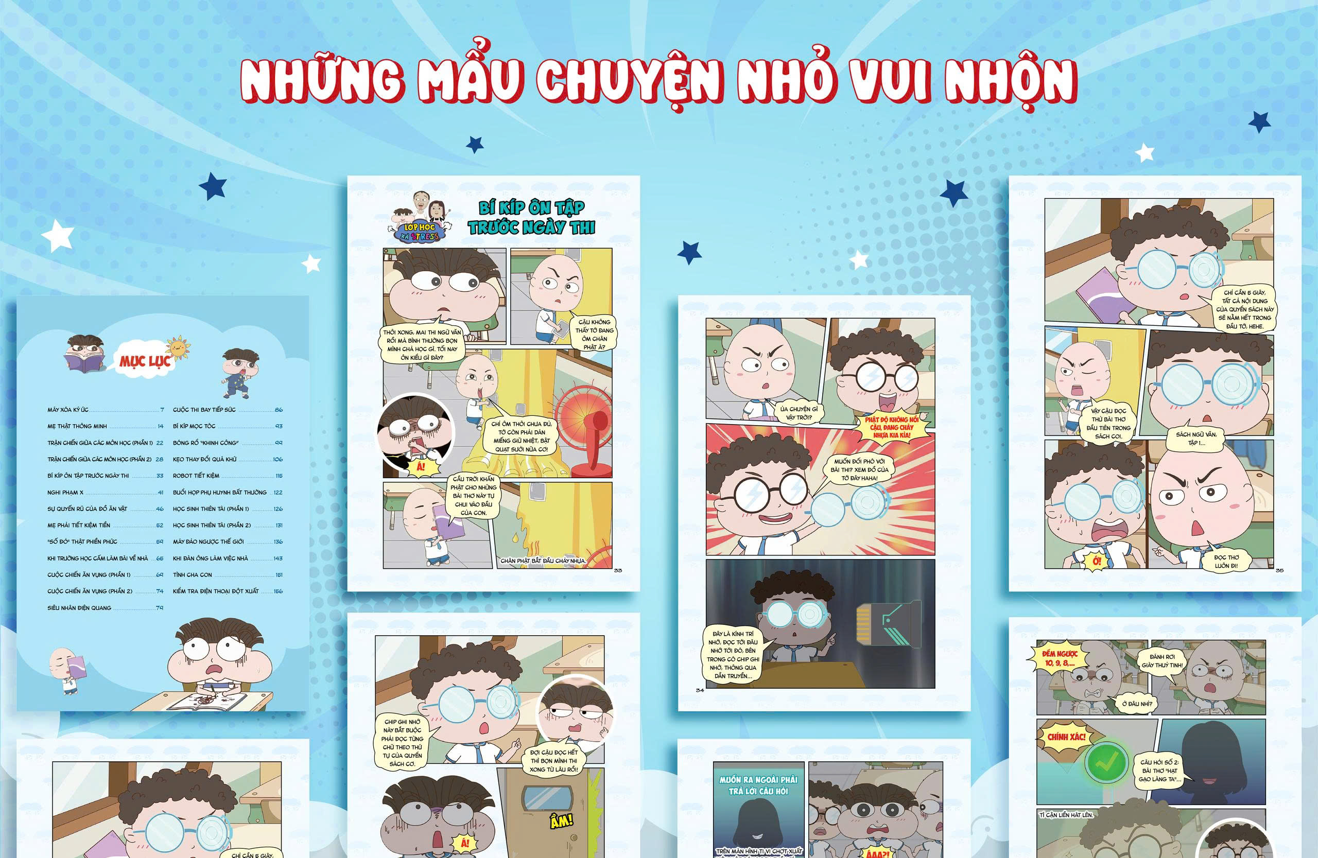 Bộ truyện tranh Lớp học xả stress là một tác phẩm sáng tạo và vui nhộn, dành cho độc giả của lứa tuổi học trò. Với nhân vật chính là cậu bé Mít và những câu chuyện xoay quanh cuộc sống thường ngày của cậu ấy cùng gia đình và bạn bè, cuốn sách mang đến những trải nghiệm đa màu sắc và hấp dẫn. Qua những tình huống hài hước và các câu chuyện ngắn dí dỏm, bộ truyện tranh Lớp học xả stress không chỉ mang tính giải trí giúp các bạn học sinh giải tỏa căng thẳng sau các giờ học tập mà còn mang những ý nghĩa nhân văn giáo dục trẻ em.