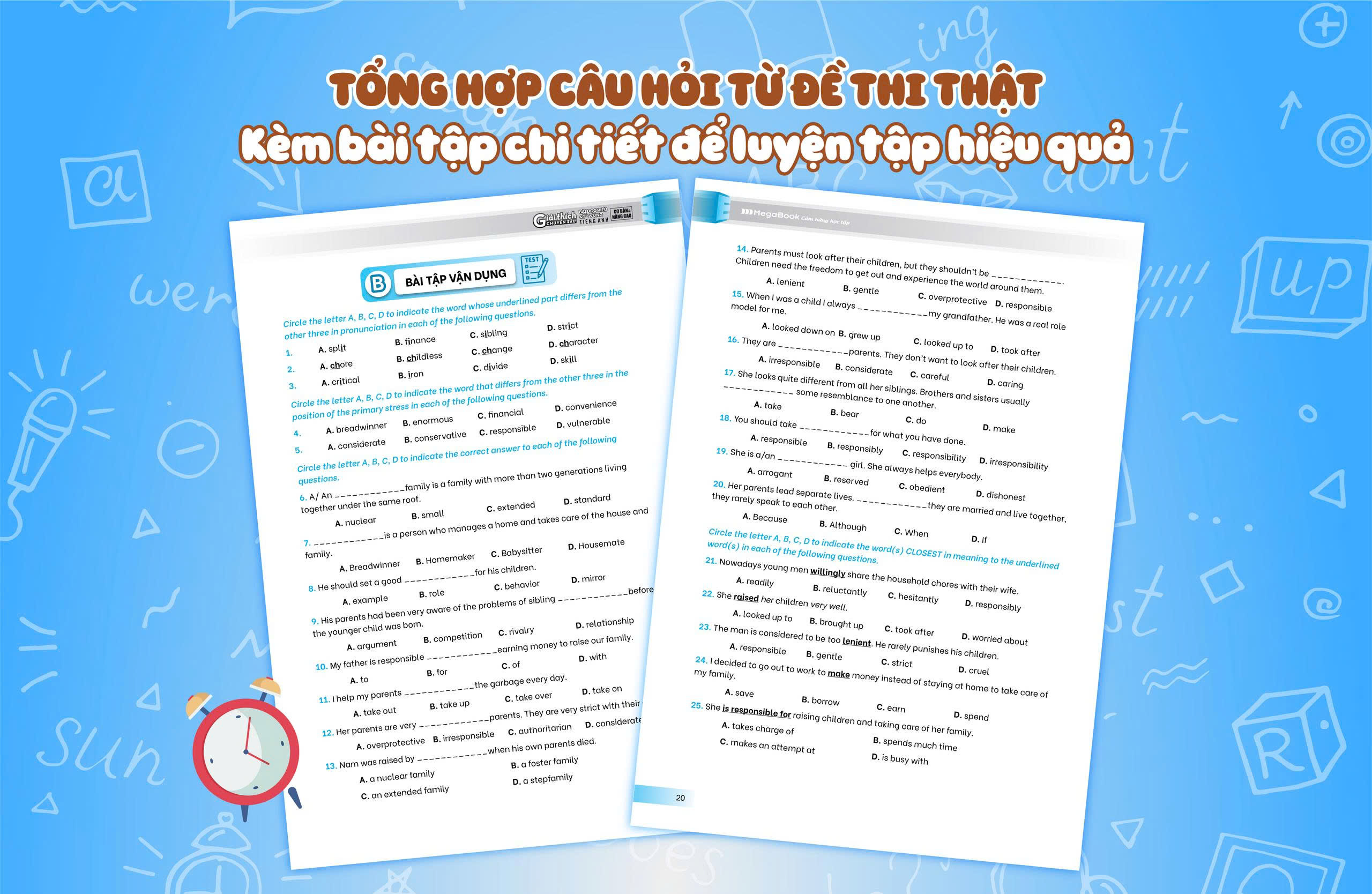 Gồm các câu hỏi đặc trưng tiêu biểu được trích từ đề thi thật, có kèm phân tích và giải thích chi tiết, giúp các em làm quen với các câu hỏi trong đề thi, cũng như tự ôn tập và vận dụng các kiến thức ngữ pháp vừa được học.