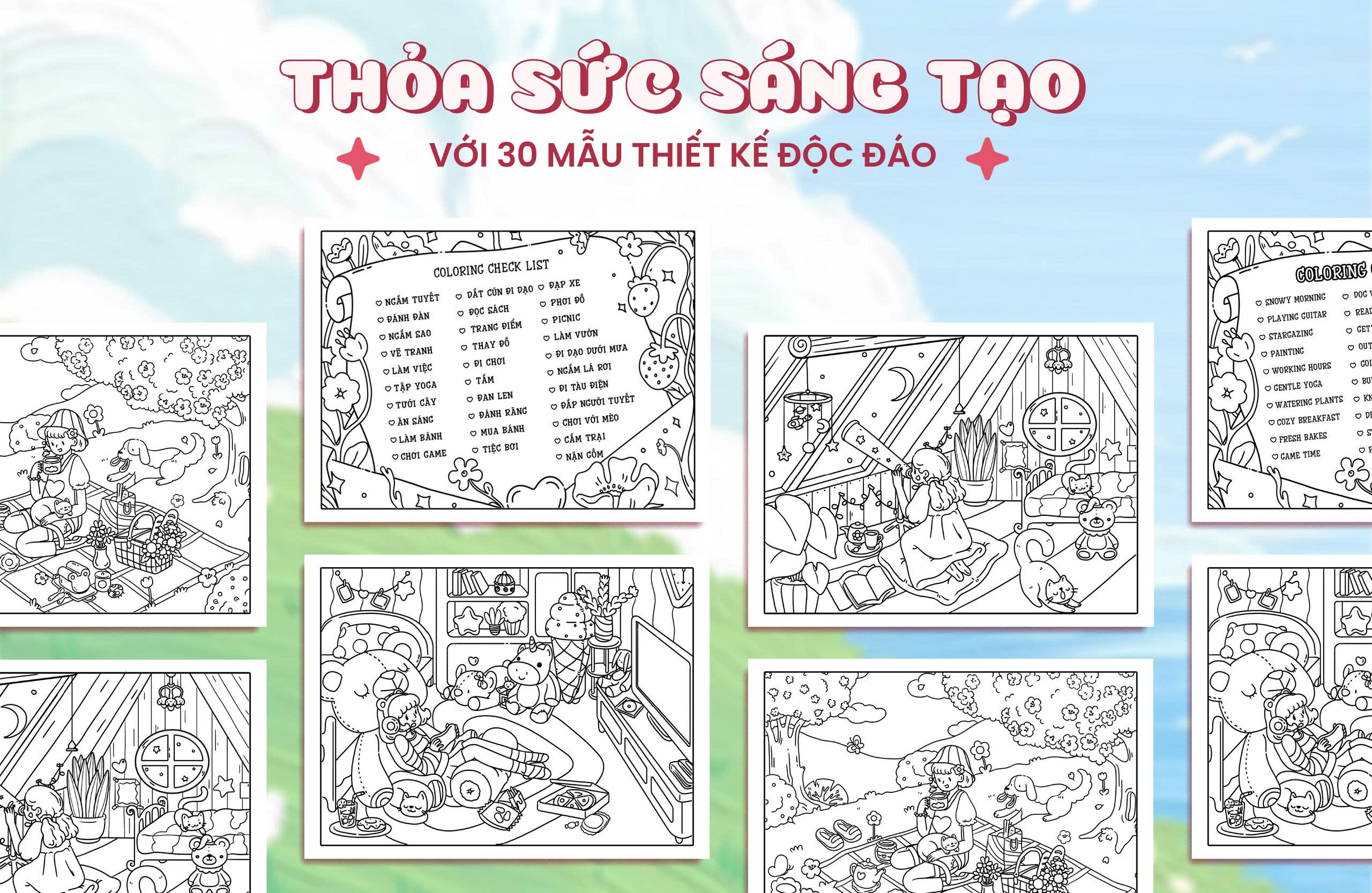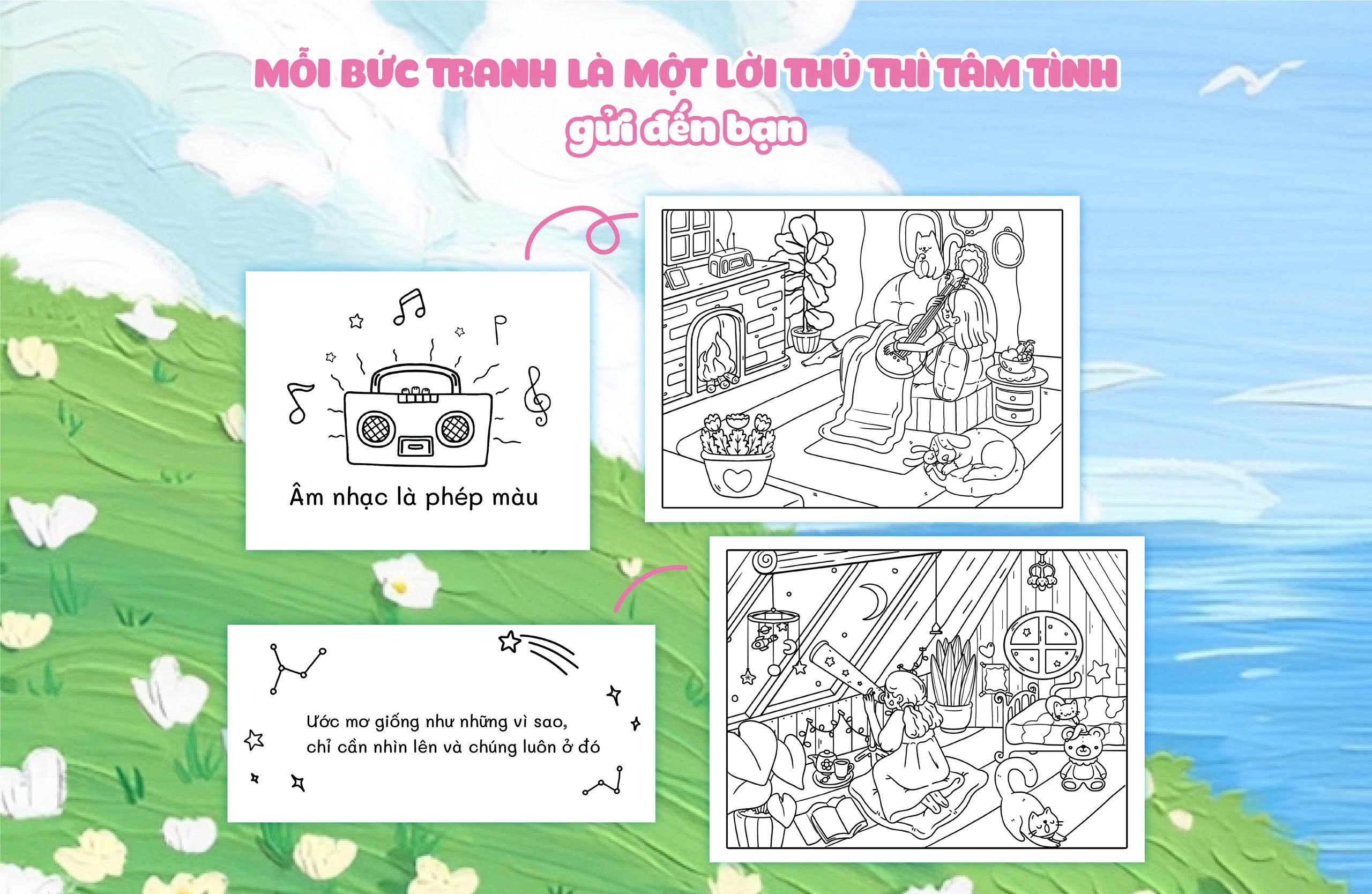 - Với 30 chủ đề tô màu phong phú đa dạng, mỗi bức tranh như là một lời thủ thỉ tâm tình gửi đến bạn