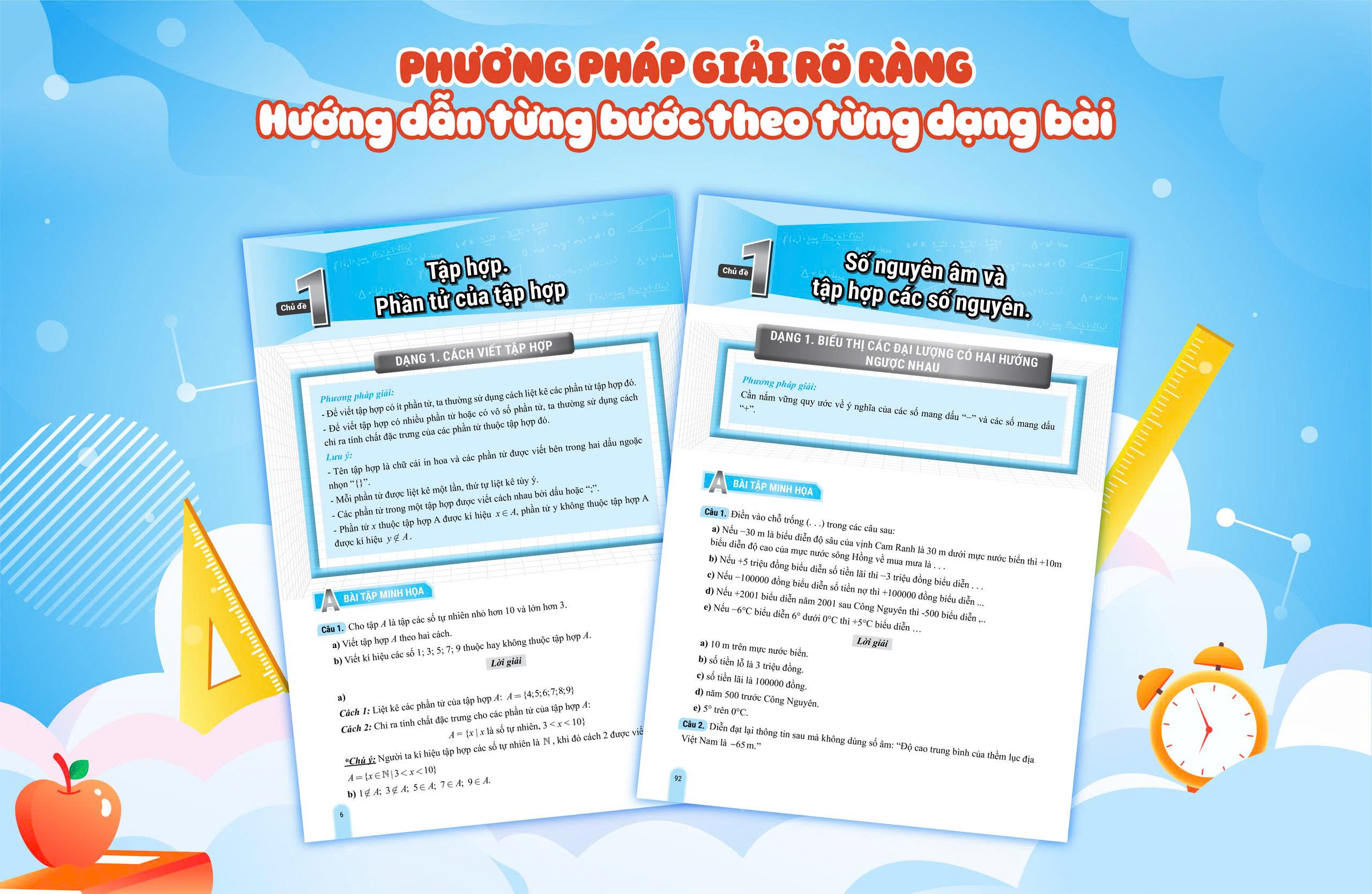 Cuốn sách cũng cung cấp lượng bài tập phong phú, tổng hợp theo nhiều cấp độ từ cơ bản đến nâng cao kèm lời giải chi tiết, để các em trau dồi liên tục, rèn luyện thành thục kỹ năng giải toán theo dạng.