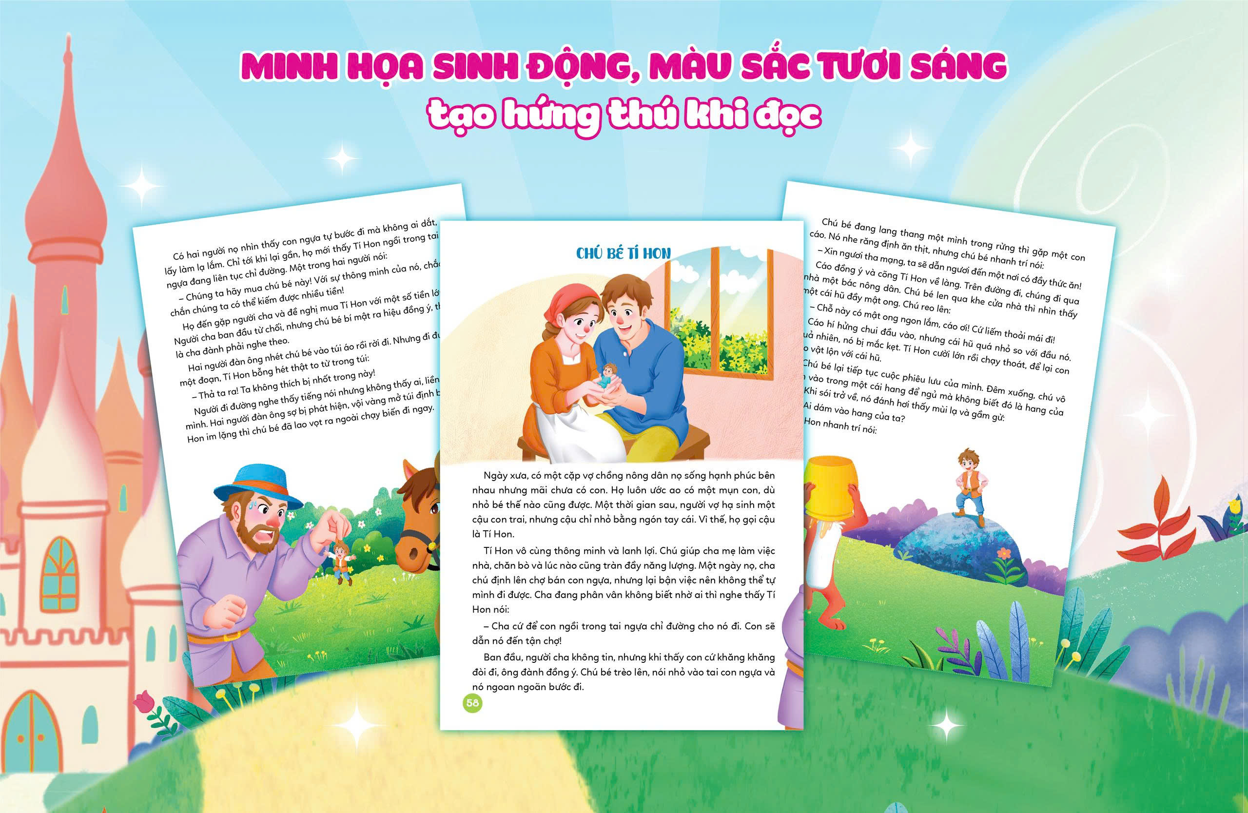 Thế giới cổ tích với những câu chuyện mộc mạc mà sâu lắng của truyện cổ tích Việt Nam hay với phép màu, nhân vật kỳ ảo và tình tiết hấp dẫn của truyện cổ Grimm giúp trẻ thỏa sức tưởng tượng, mở rộng tư duy sáng tạo và khả năng liên tưởng phong phú.