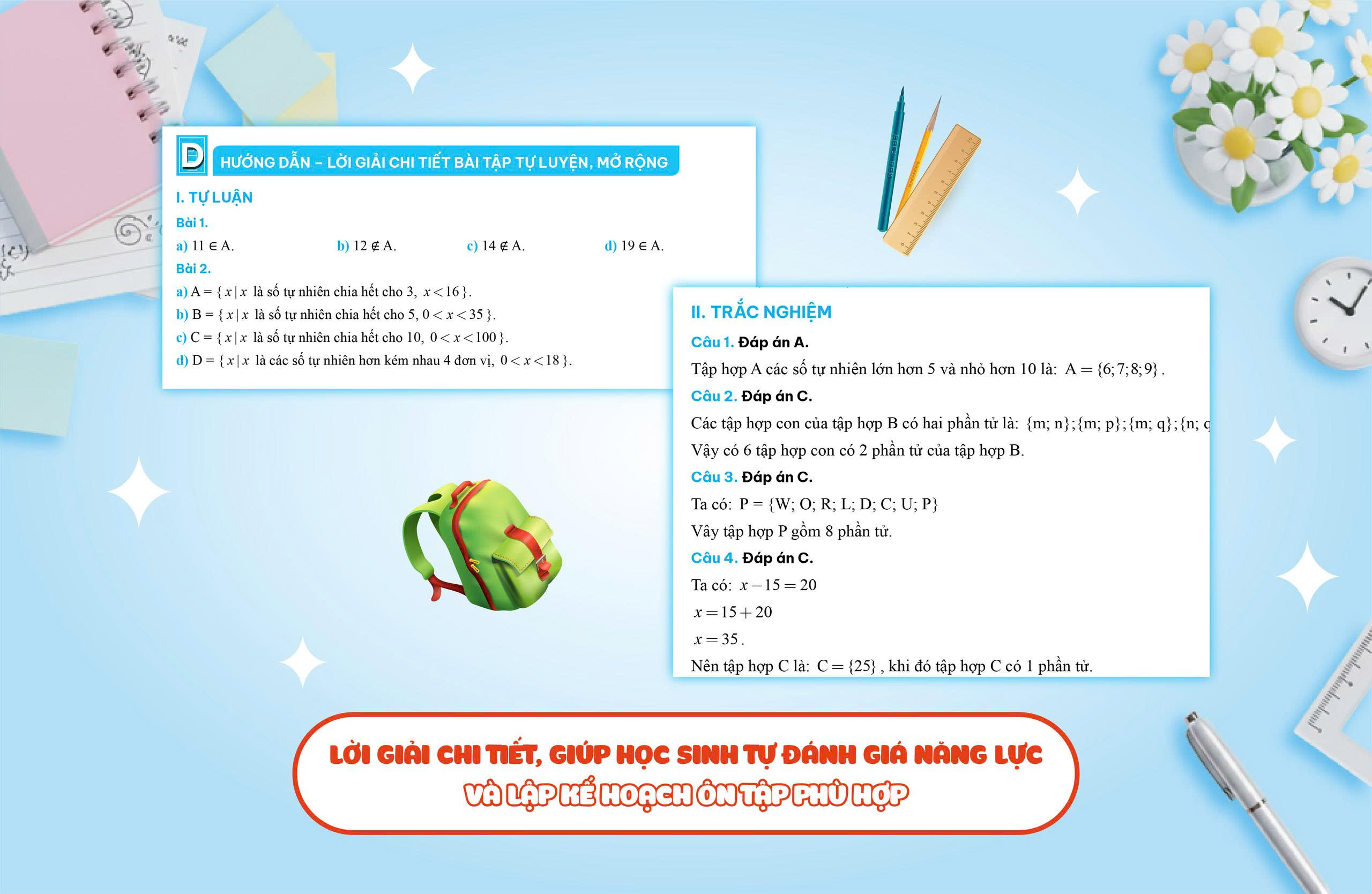 Kèm với đó là lơi giải chi tiết, phần này sẽ giúp củng cố cách trình bày và giúp các em đánh giá chính xác năng lực tự học, từ đó có kế hoạch ôn tập phù hợp.
