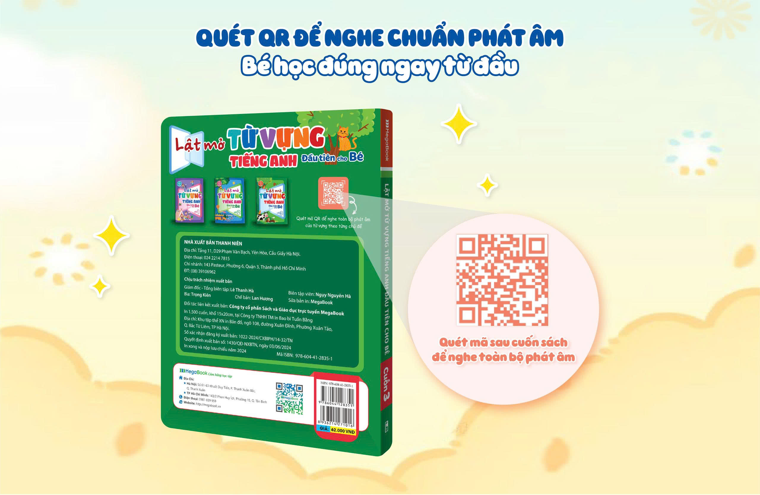Mỗi cuốn sách đều có mã QR cho phép bạn quét và truy cập vào toàn bộ phần phát âm của từ vựng theo từng chủ đề. Bằng cách quét mã QR, trẻ em có thể nghe cách phát âm chính xác của từng từ vựng một cách trực quan và sinh động.