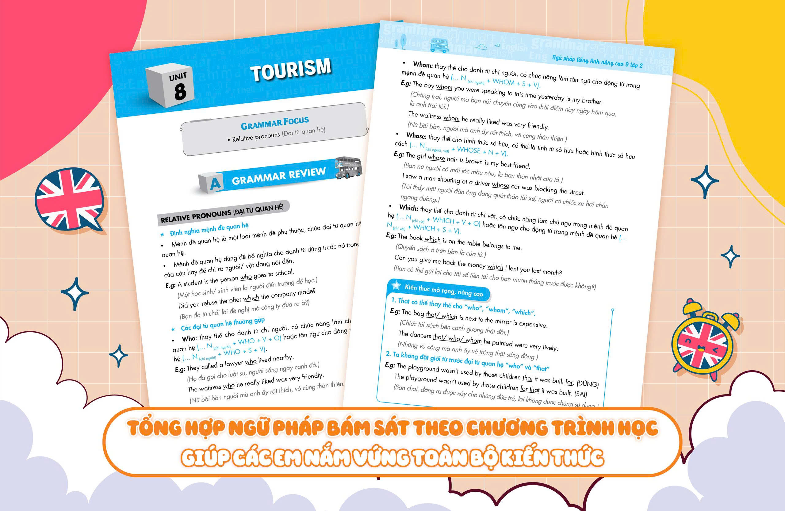 Cuốn sách Ngữ Pháp Tiếng Anh Nâng Cao Lớp 9 Tập 2 (Global) là nguồn tài liệu đáng tin cậy dành cho các học sinh lớp 9, giúp các bạn học sinh nắm vững kiến thức ngữ pháp theo chương trình học. Sách với những bài tập đa dạng và chi tiết, cuốn sách này không chỉ giúp học sinh rèn luyện kỹ năng ngữ pháp mà còn khuyến khích các em tự đánh giá và theo dõi sự tiến bộ của cá nhân. Với đáp án và lời giải chi tiết đi kèm từng bài tập, học sinh có thể nhanh chóng hiểu và sửa sai các lỗi mắc phải, rút ra bài học kinh nghiệm sau mỗi lần làm bài tập.