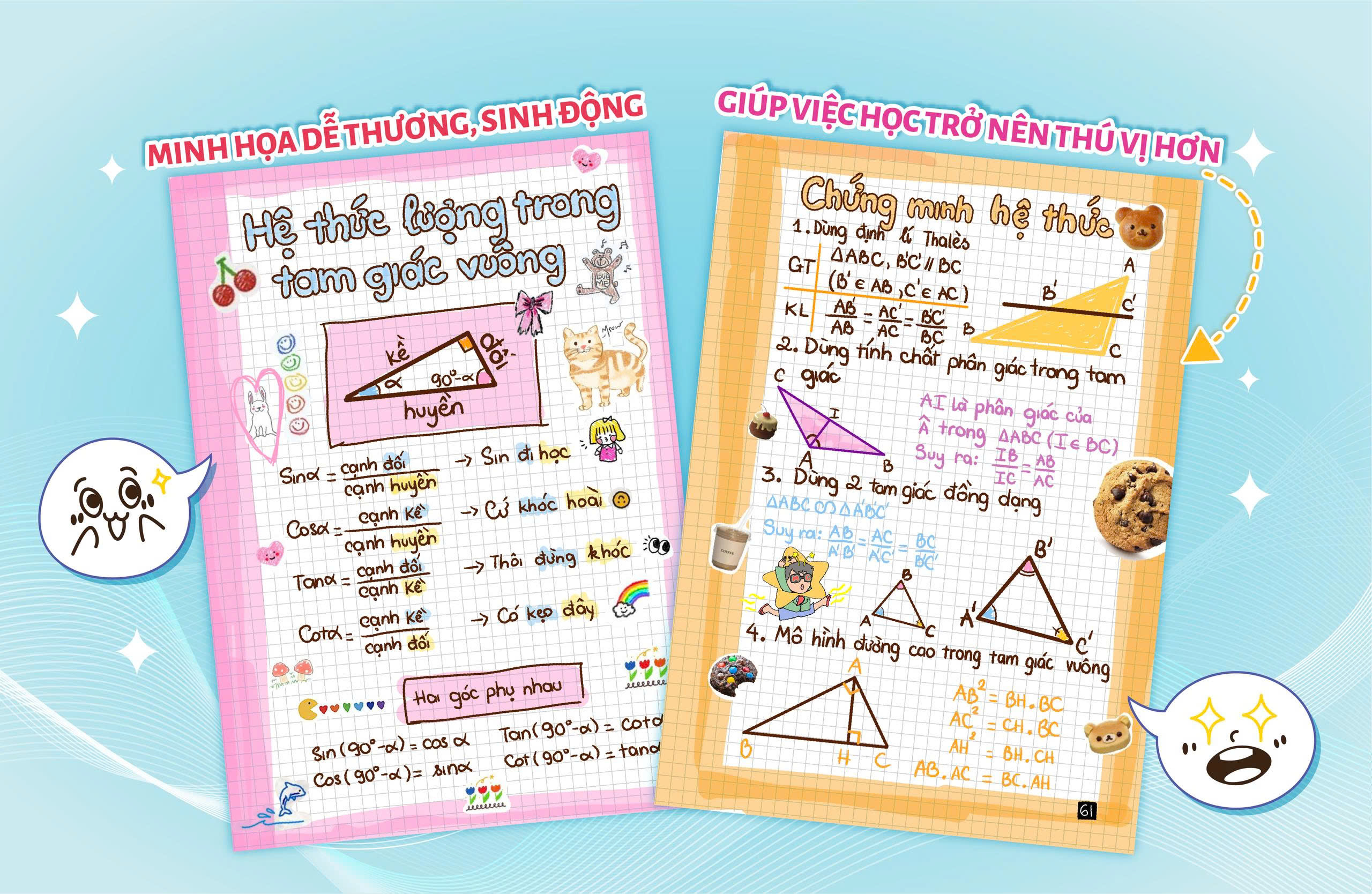 Hình hóa kiến thức – dễ hiểu vượt trội: Công thức, định lý được minh họa bằng hình vẽ trực quan, giúp học sinh nắm bản chất thay vì học thuộc máy móc.