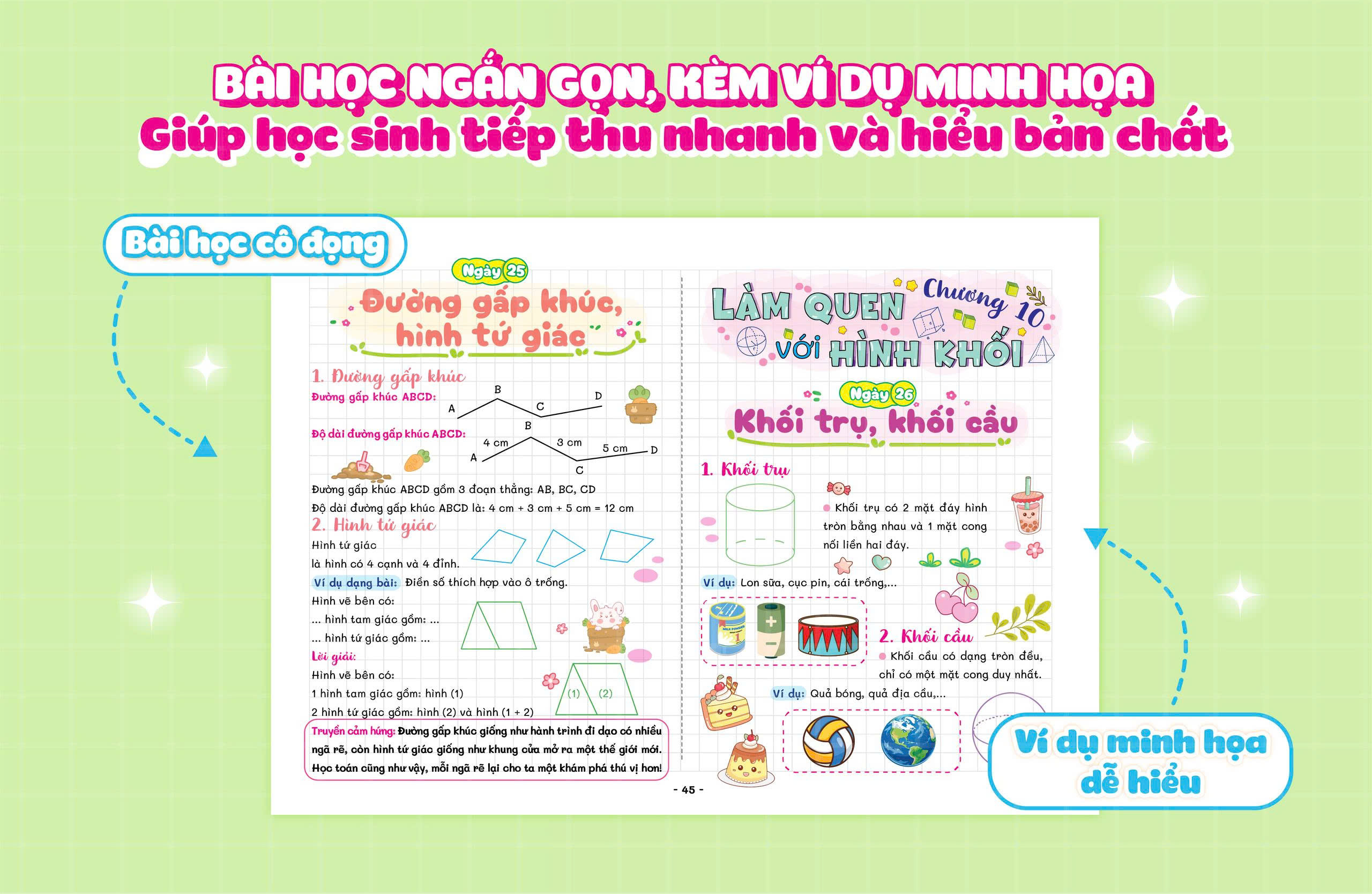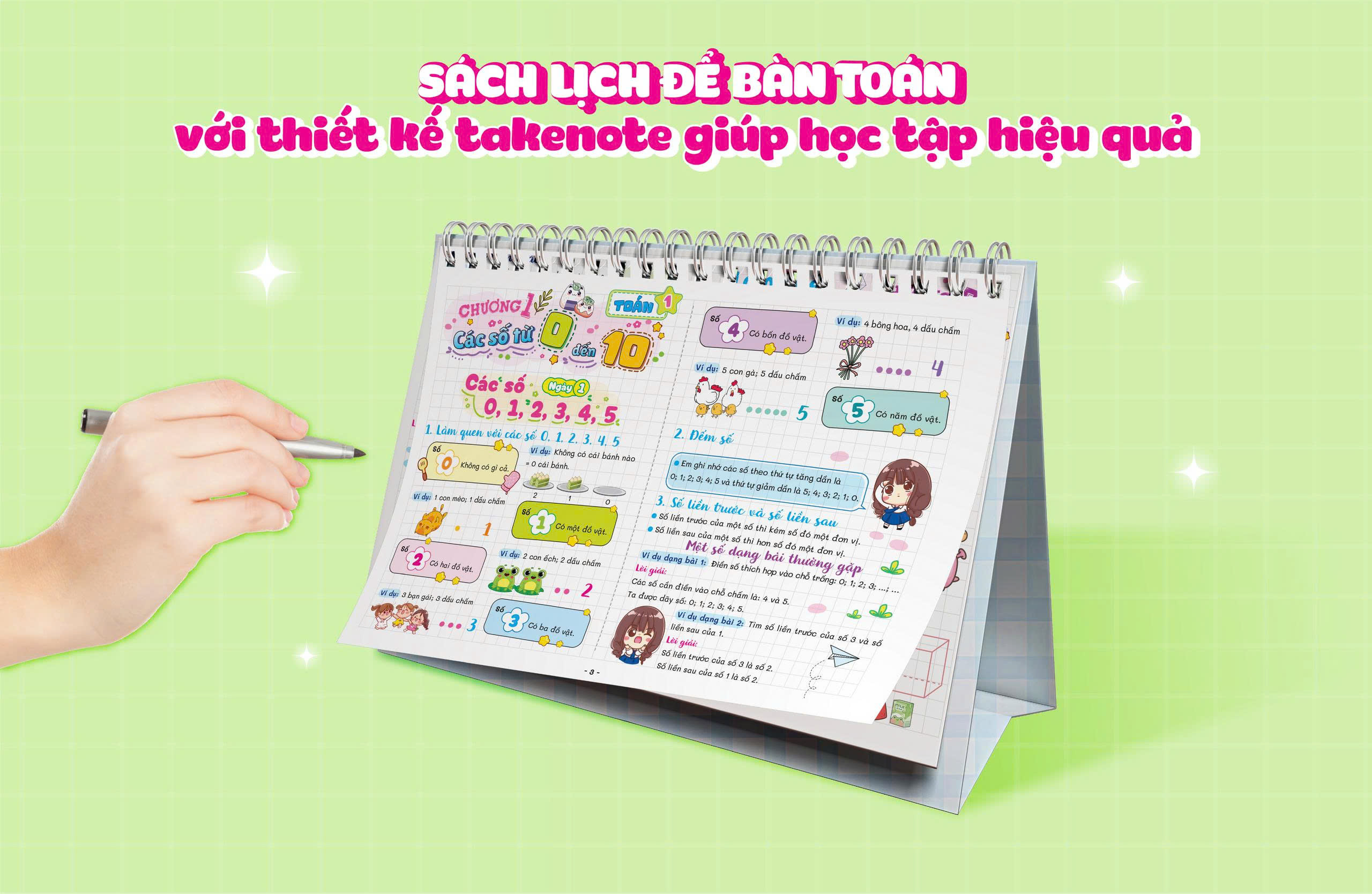 Thiết kế xinh xắn – truyền cảm hứng học tập: Màu sắc dễ thương, hình minh họa nhẹ nhàng giúp việc học trở nên thú vị hơn, hứng thú hơn.