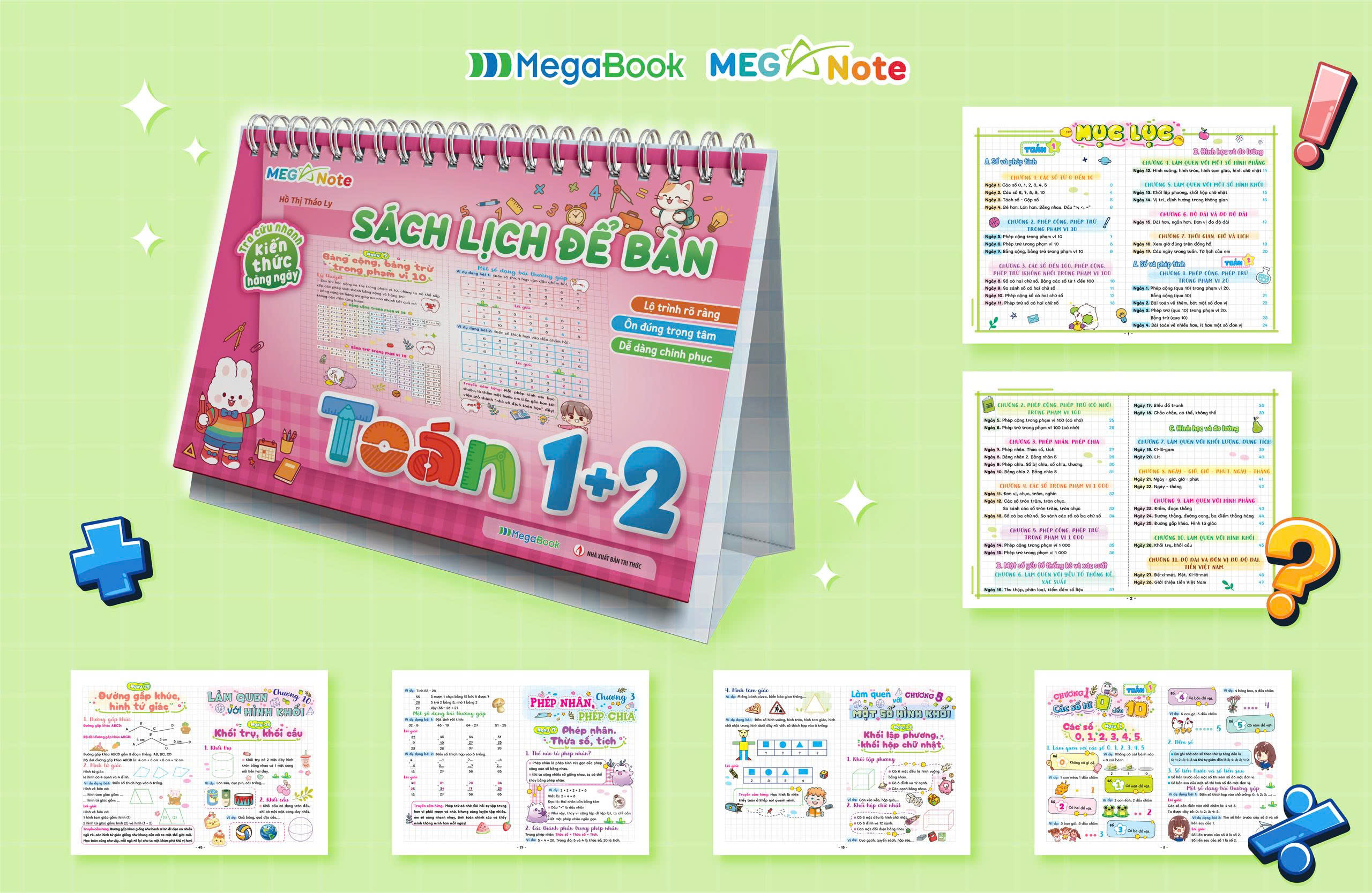 Sách Lịch Để Bàn – Tra Cứu Nhanh Kiến Thức Hàng Ngày Toán lớp 1+2 nằm trong bộ Sách Lịch Để Bàn – Tra Cứu Nhanh Kiến Thức Hàng Ngày Toán Tiểu học là trợ thủ học tập thông minh dành cho học sinh lớp 1 và lớp 2. Thiết kế dạng lịch để bàn độc đáo, trình bày theo phong cách takenote khoa học, giúp các bạn nhỏ dễ theo dõi kiến thức từng bài, từng chương. Mỗi trang đều ngắn gọn – trọng tâm – dễ nhớ, hỗ trợ tự học hiệu quả và ôn thi nhanh chóng. Thiết kế xinh xắn nhưng vẫn đầy đủ kiến thức trọng tâm chuẩn chương trình mới, giúp học sinh chinh phục điểm cao một cách nhẹ nhàng.