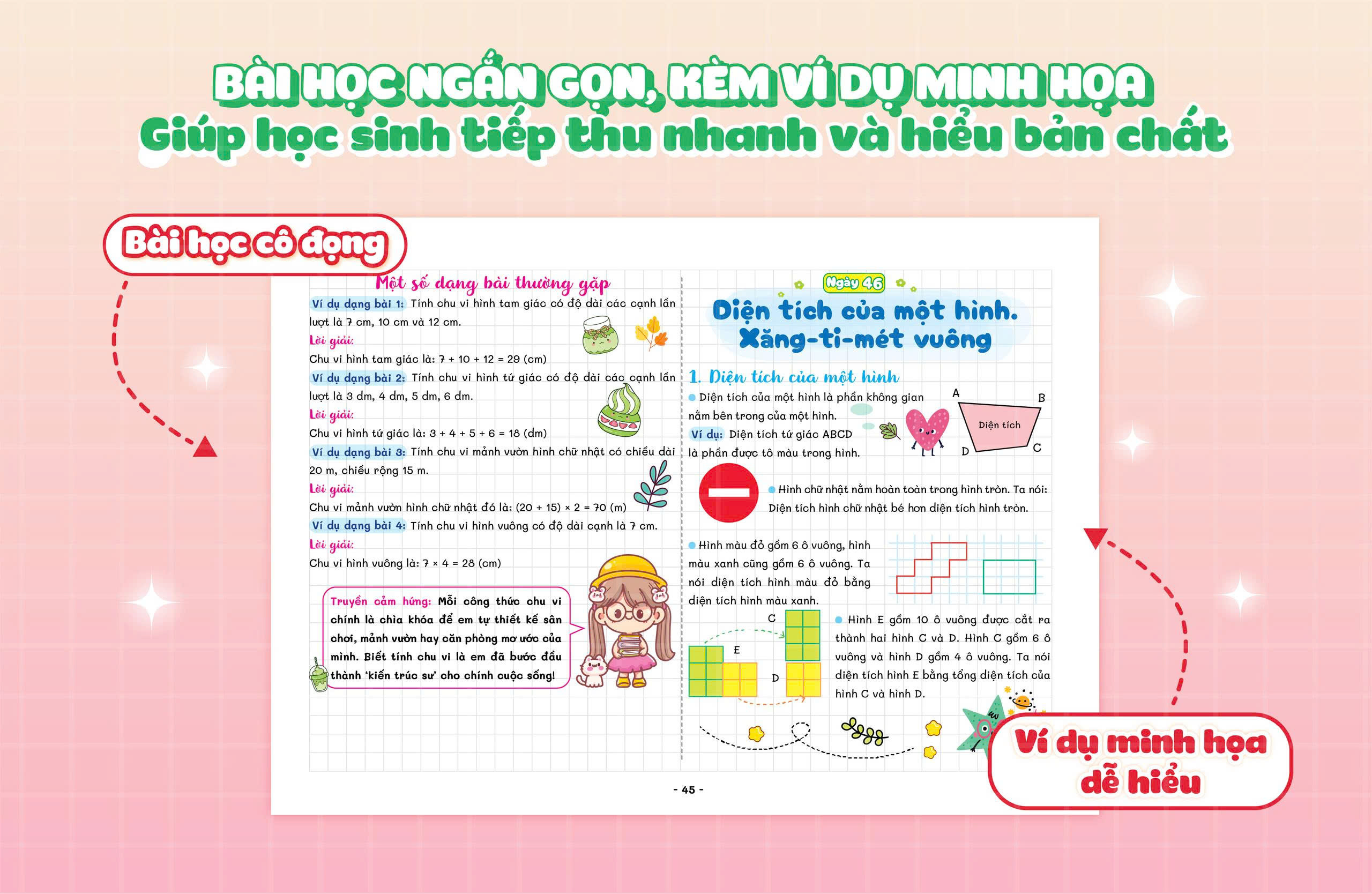 Thiết kế xinh xắn – truyền cảm hứng học tập: Màu sắc dễ thương, hình minh họa nhẹ nhàng giúp việc học trở nên thú vị hơn, hứng thú hơn.