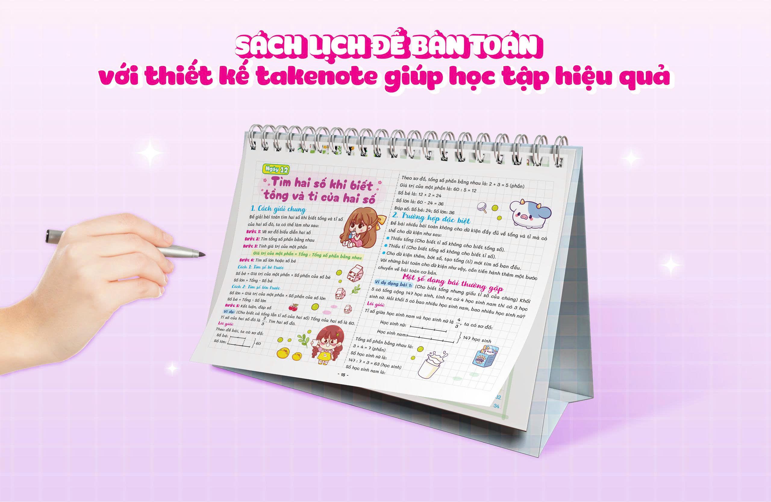 Thiết kế xinh xắn – truyền cảm hứng học tập: Màu sắc dễ thương, hình minh họa nhẹ nhàng giúp việc học trở nên thú vị hơn, hứng thú hơn.