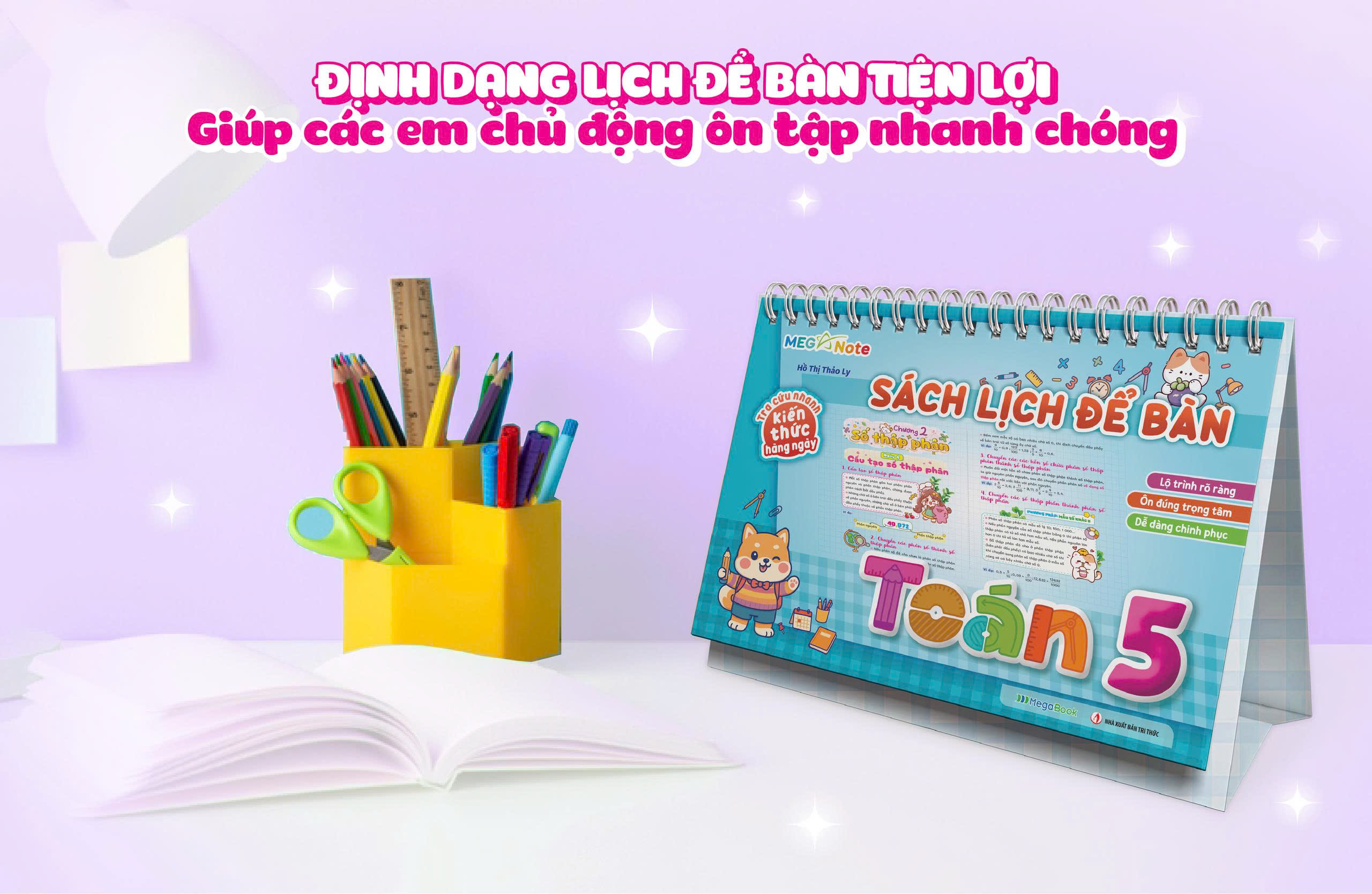 Thiết kế dạng lịch để bàn tiện lợi: Sách đứng vững trên bàn giúp các bạn nhỏ vừa học vừa tra cứu rất nhanh. Không cần lật tìm trong sách giáo khoa, chỉ cần liếc mắt qua là thấy ngay kiến thức cần dùng, đặc biệt hữu ích khi làm bài tập hoặc ôn thi.