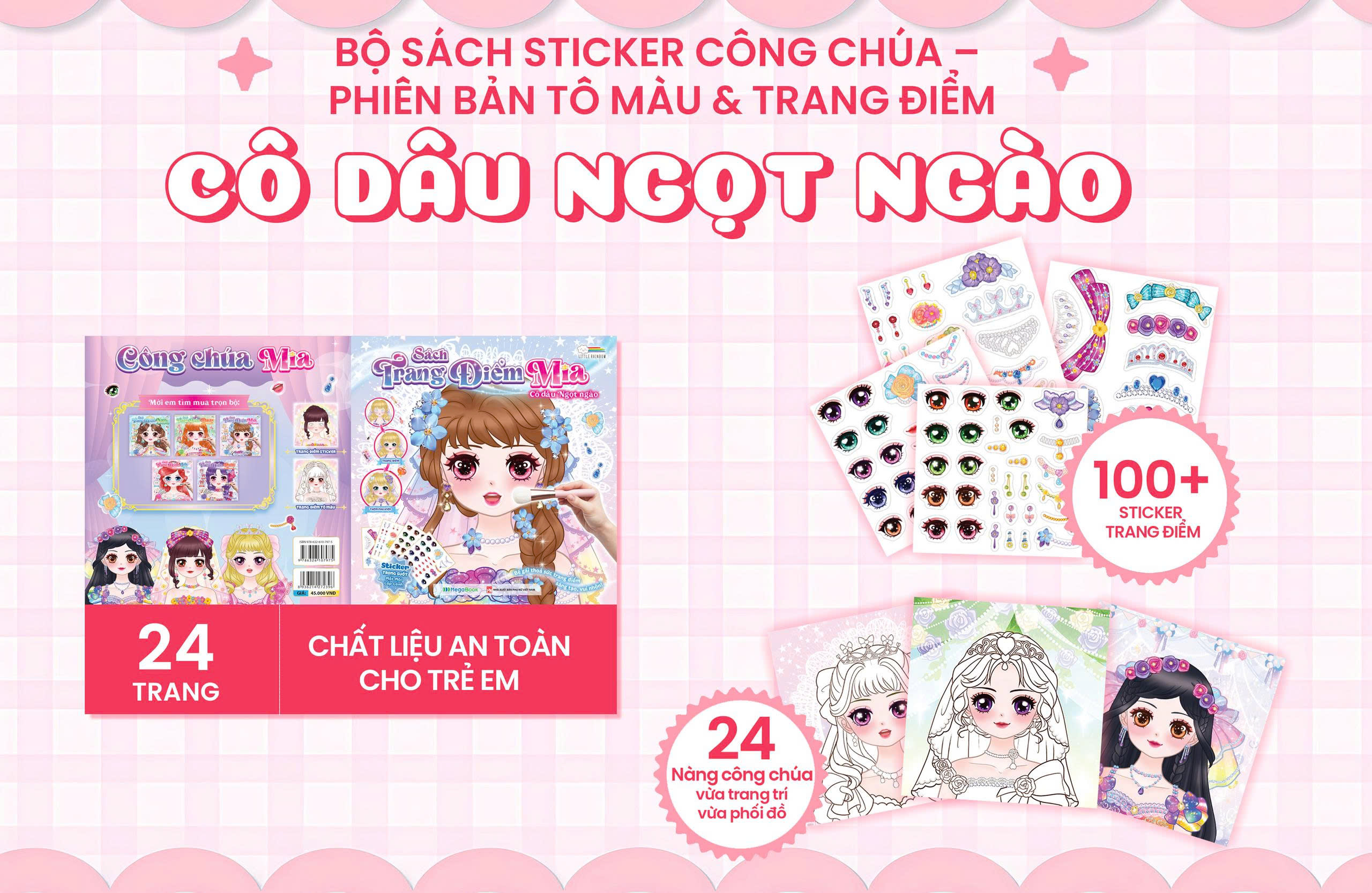 Sách Trang điểm công chúa Mia - Cô dâu Ngọt Ngào (Hơn 100 Stickers phụ kiện lấp lánh) (Tô màu và bóc dán hơn 100+ stickers cho bé)