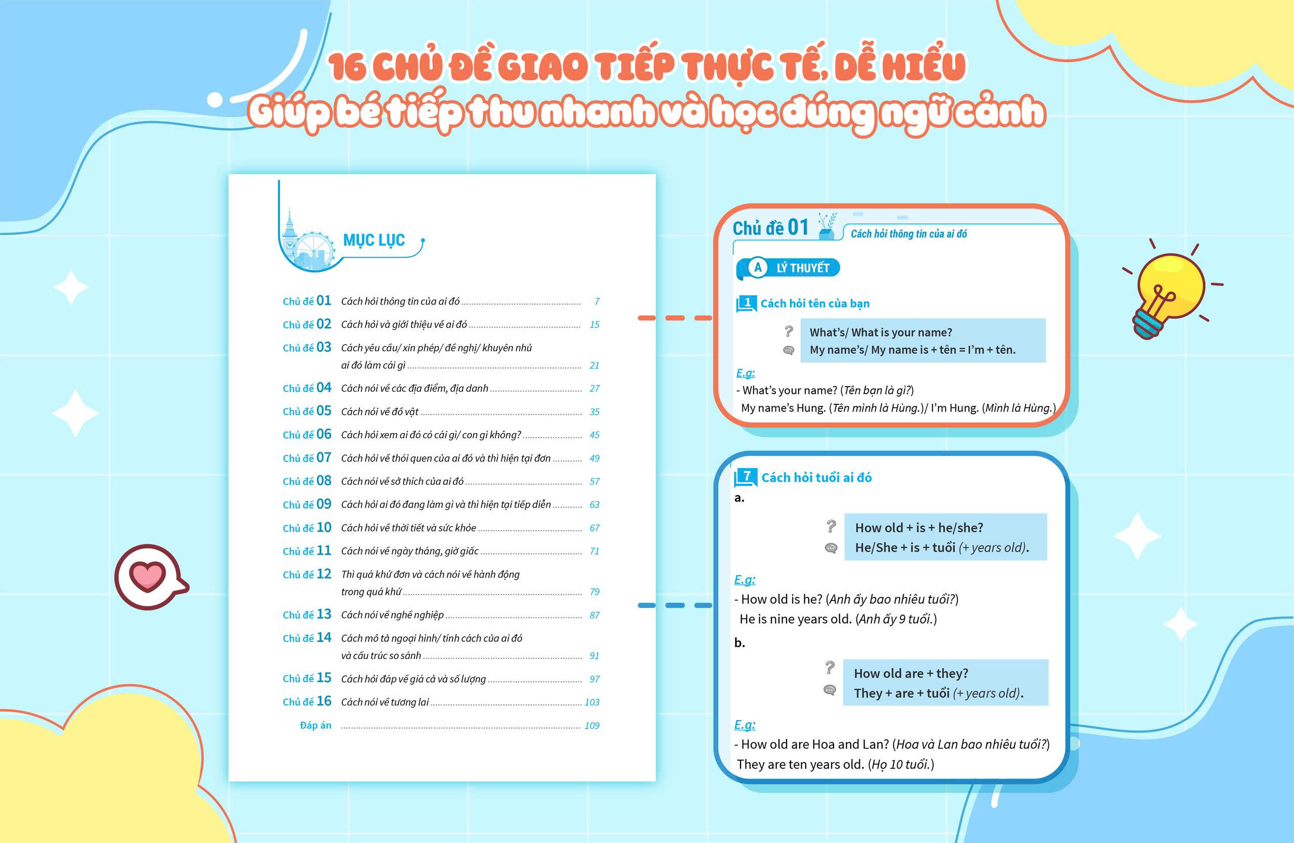 1. Hệ thống toàn bộ kiến thức trọng tâm của chương trình tiếng Anh Tiểu học, bao gồm 16 chủ đề theo chương trình học của Sách giáo khoa, bám sát khung đào tạo trên lớp. Mỗi chủ đề bao gồm 2 phần Lý thuyết & Vận dụng.
