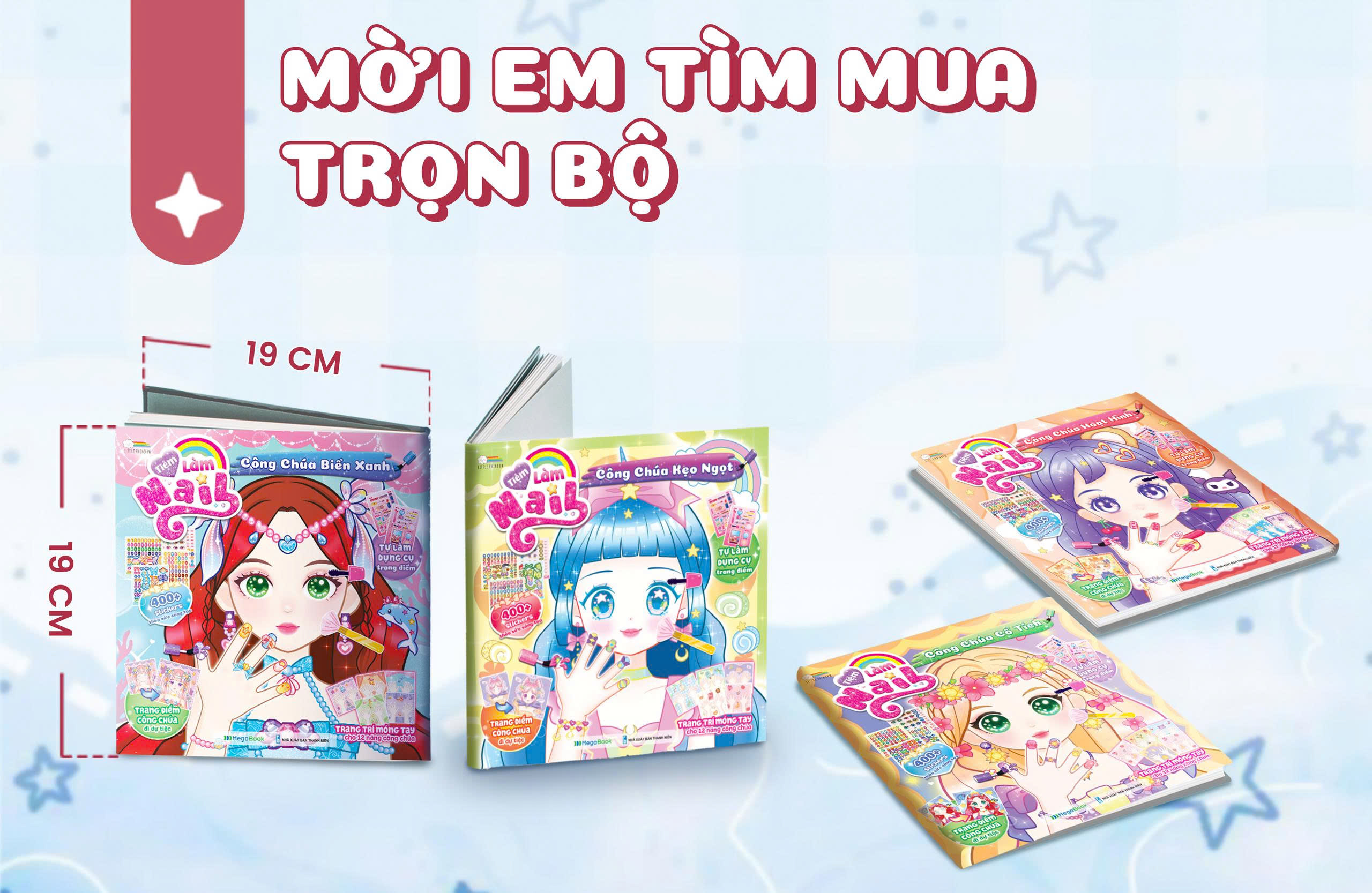 Bộ sách Tiệm làm Nail trọn bộ gồm 4 cuốn, mỗi cuốn có các hình công chúa theo chủ đề và 400+ sticker móng tay, phụ kiện trang sức, giúp các bé thỏa sức sáng tạo, hóa thân thành các thợ làm Nail chuyên nghiệp, mang đến thế giới sáng tạo đầy màu sắc và niềm vui bất tận. Với bộ sách này, bé không chỉ thỏa sức sáng tạo mà còn phát triển khả năng thẩm mỹ và khéo léo qua từng chi tiết. Bộ sách Tiệm làm Nail là lựa chọn hoàn hảo dành cho các bé yêu thích làm đẹp.