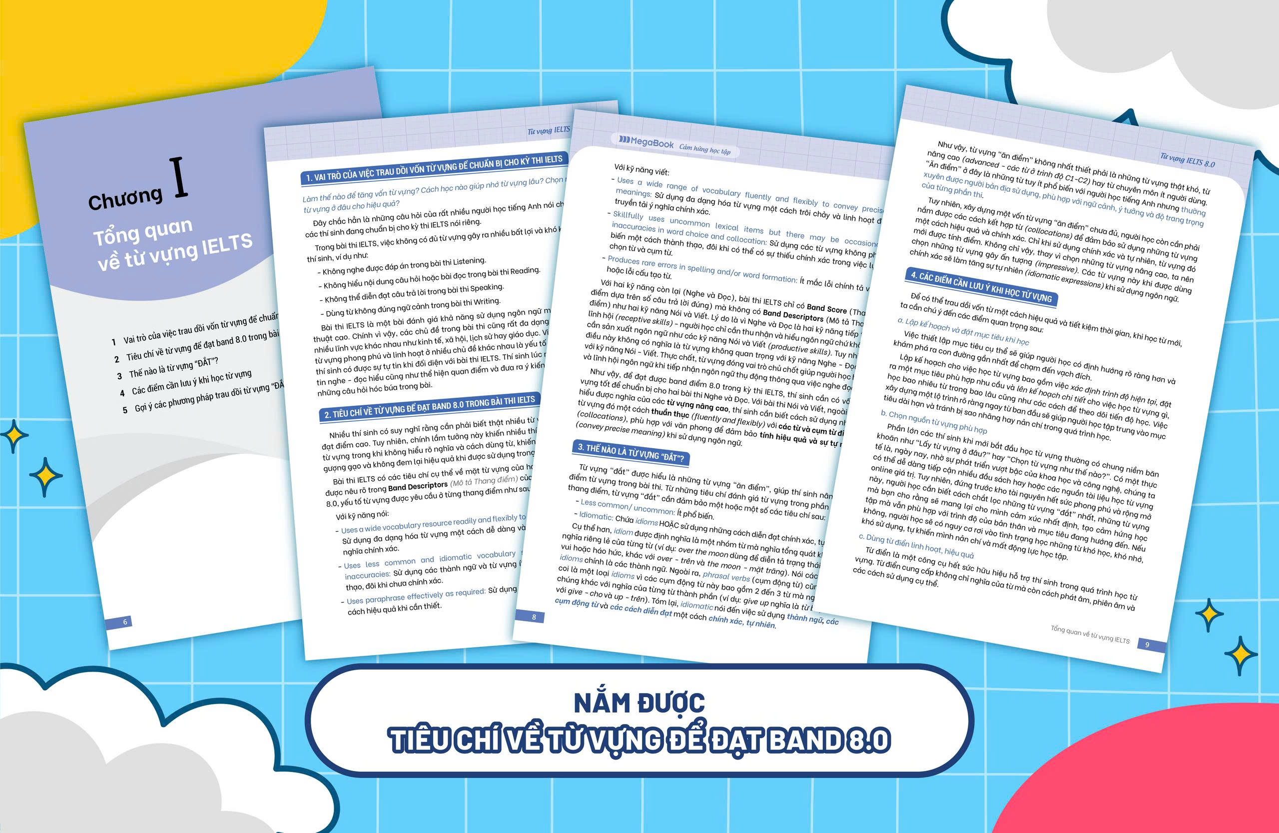 Từ vựng IELTS 8.0 - Từ vựng đắt để đạt điểm cao 4 kỹ năng là cuốn sách tổng hợp 15 chủ đề Từ vựng chất lượng giúp bạn đạt điểm cao cả 4 kỹ năng IELTS.