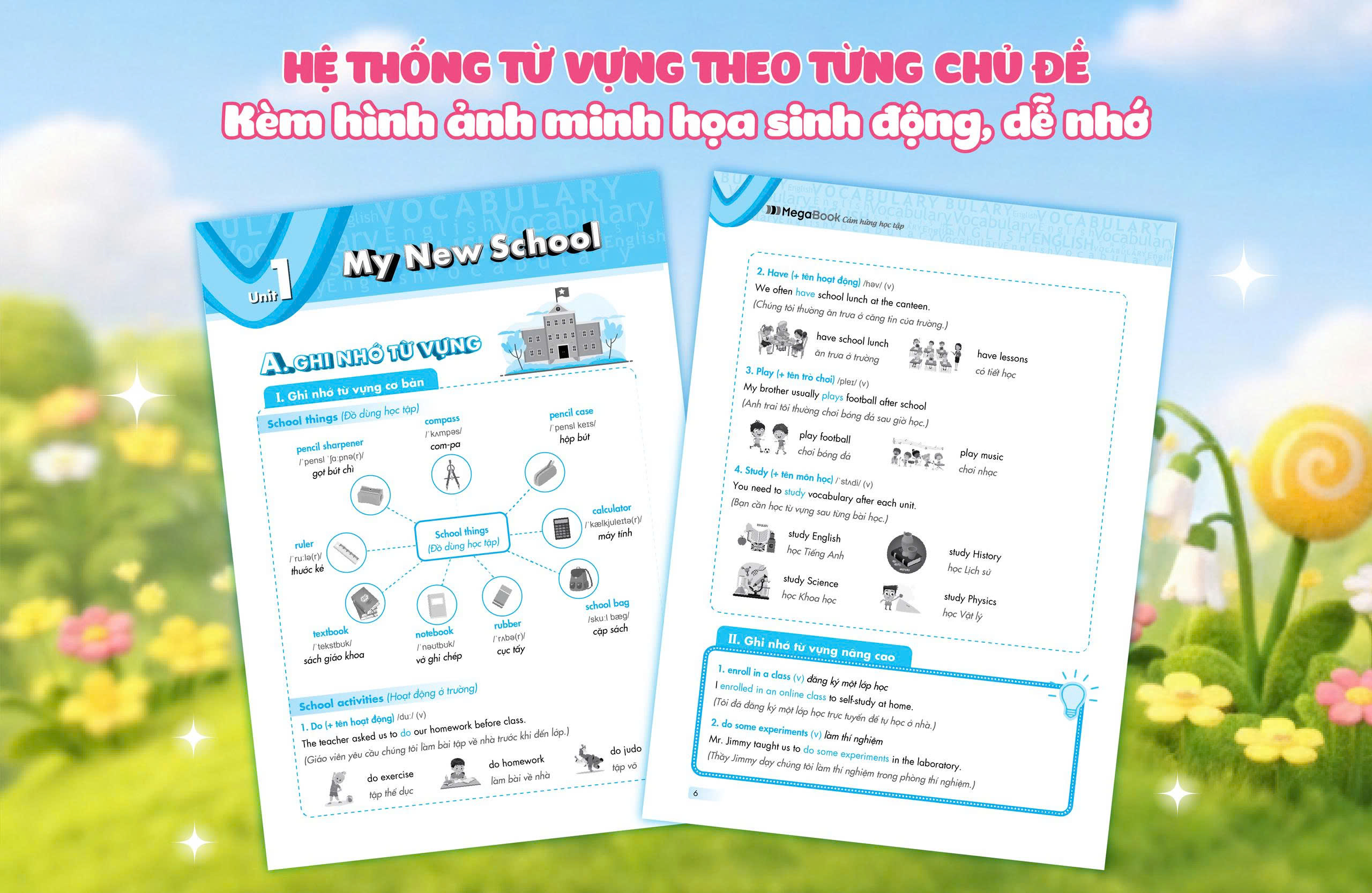 Các từ vựng được giới thiệu có kèm hình ảnh và ví dụ cụ thể giúp các em học nhanh và ghi nhớ lâu.