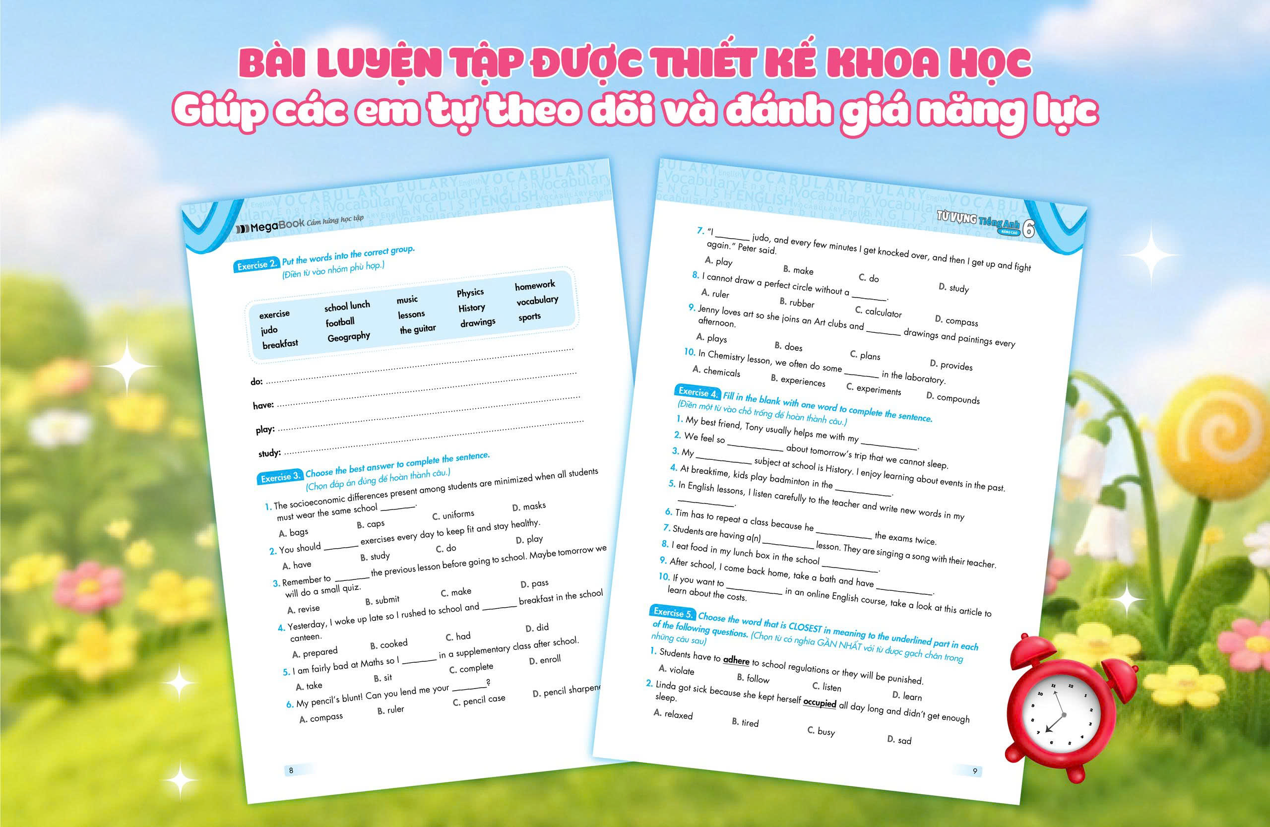Nội dung kiến thức bám sát theo các chủ đề bài học theo chương trình sách giáo khoa của Bộ giáo dục và Đào tạo, vừa giúp các em củng cố kiến thức cơ bản vừa mở rộng và thực hành kiến thức nâng cao, hỗ trợ quá trình tự học tiếng Anh hiệu quả.