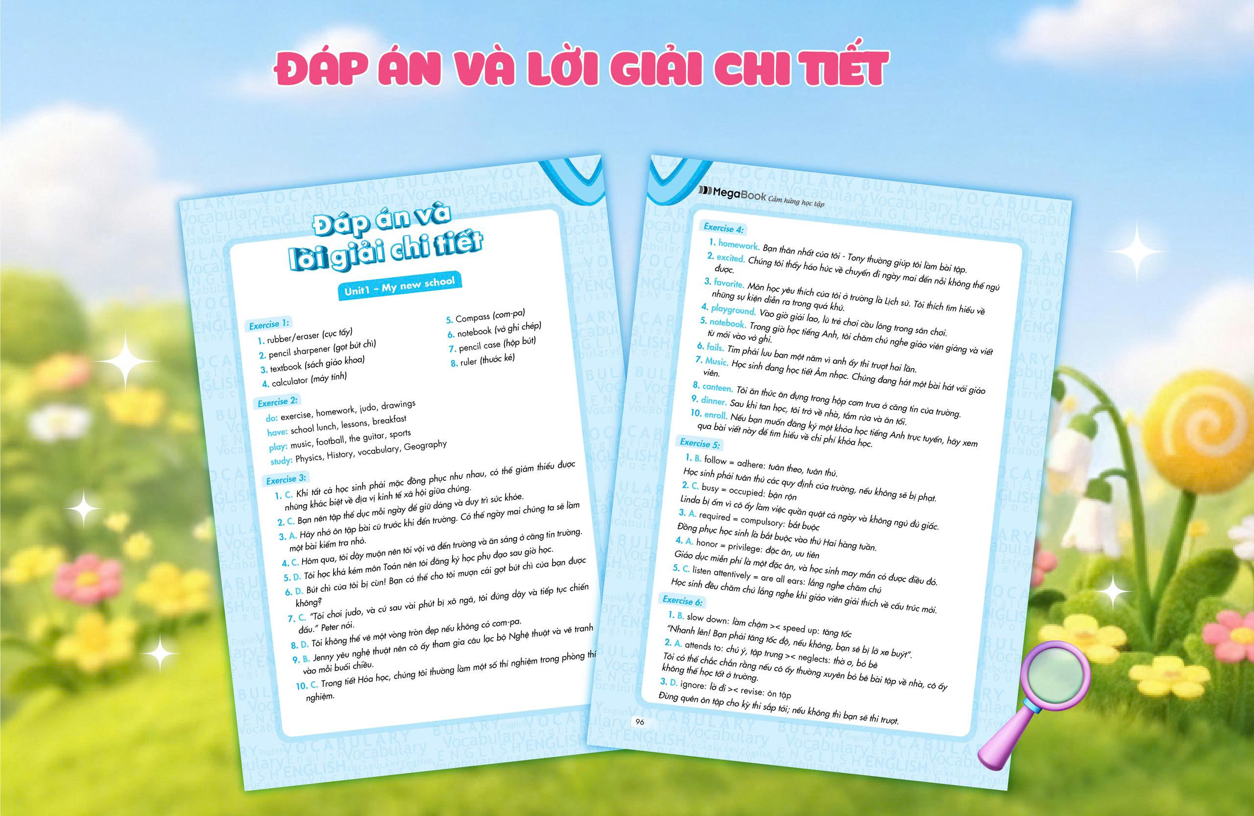 Hệ thống lời giải chi tiết và đầy đủ dịch nghĩa được trình bày rõ ràng, cụ thể không chỉ giúp các em tự đánh giá năng lực mà còn cung cấp cho các em nhiều kiến thức hữu ích để nâng cao hiểu biết.