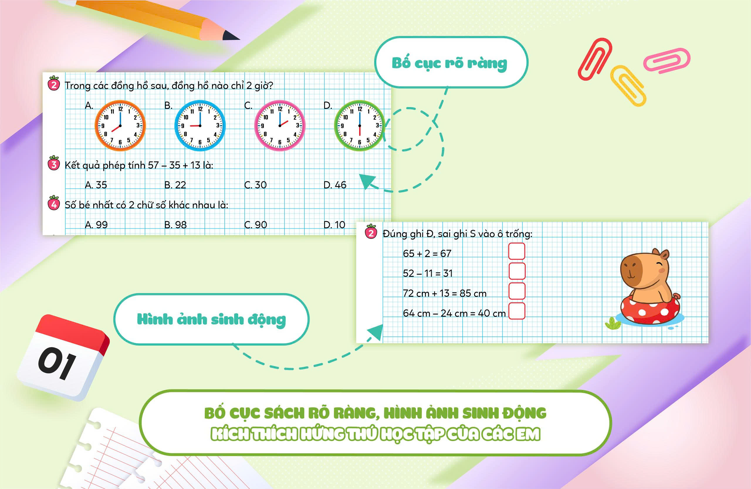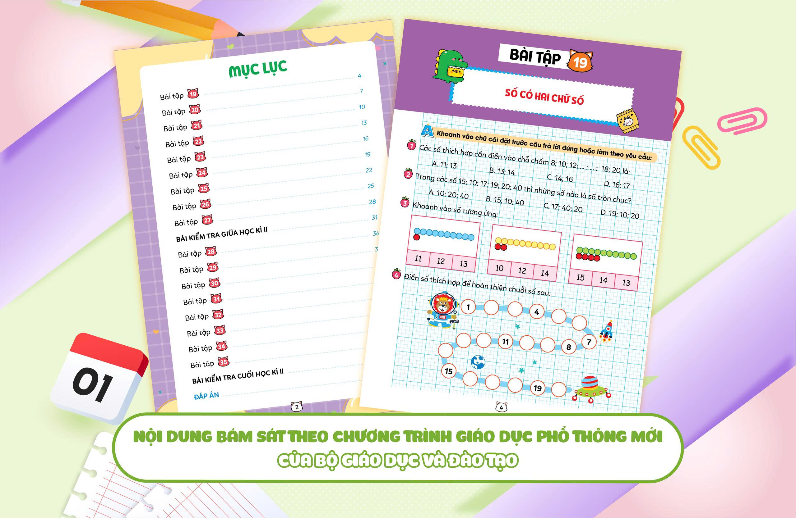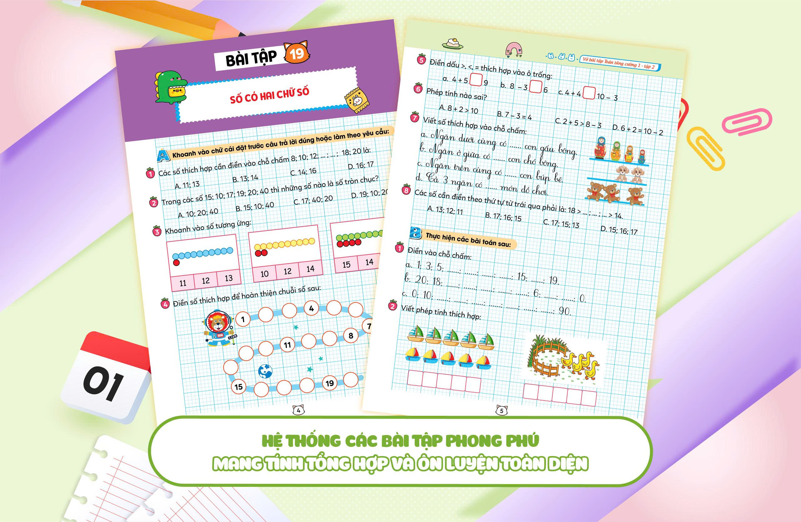 Vở bài tập Toán tăng cường lớp 1 tập 2 là tài liệu hữu ích giúp học sinh lớp 1 củng cố kiến thức Toán học một cách hiệu quả. Sách được biên soạn theo chương trình Giáo dục phổ thông mới của Bộ Giáo dục và Đào tạo. Cuốn sách này không chỉ cung cấp bài tập đa dạng mà còn bám sát chương trình học trên lớp. Bộ sách gồm tập 1 và tập 2, các em sẽ dễ dàng ôn tập và chuẩn bị cho các bài kiểm tra giữa kì và cuối kì. Đây thực sự là một người bạn đồng hành lý tưởng cho hành trình học toán của các em.