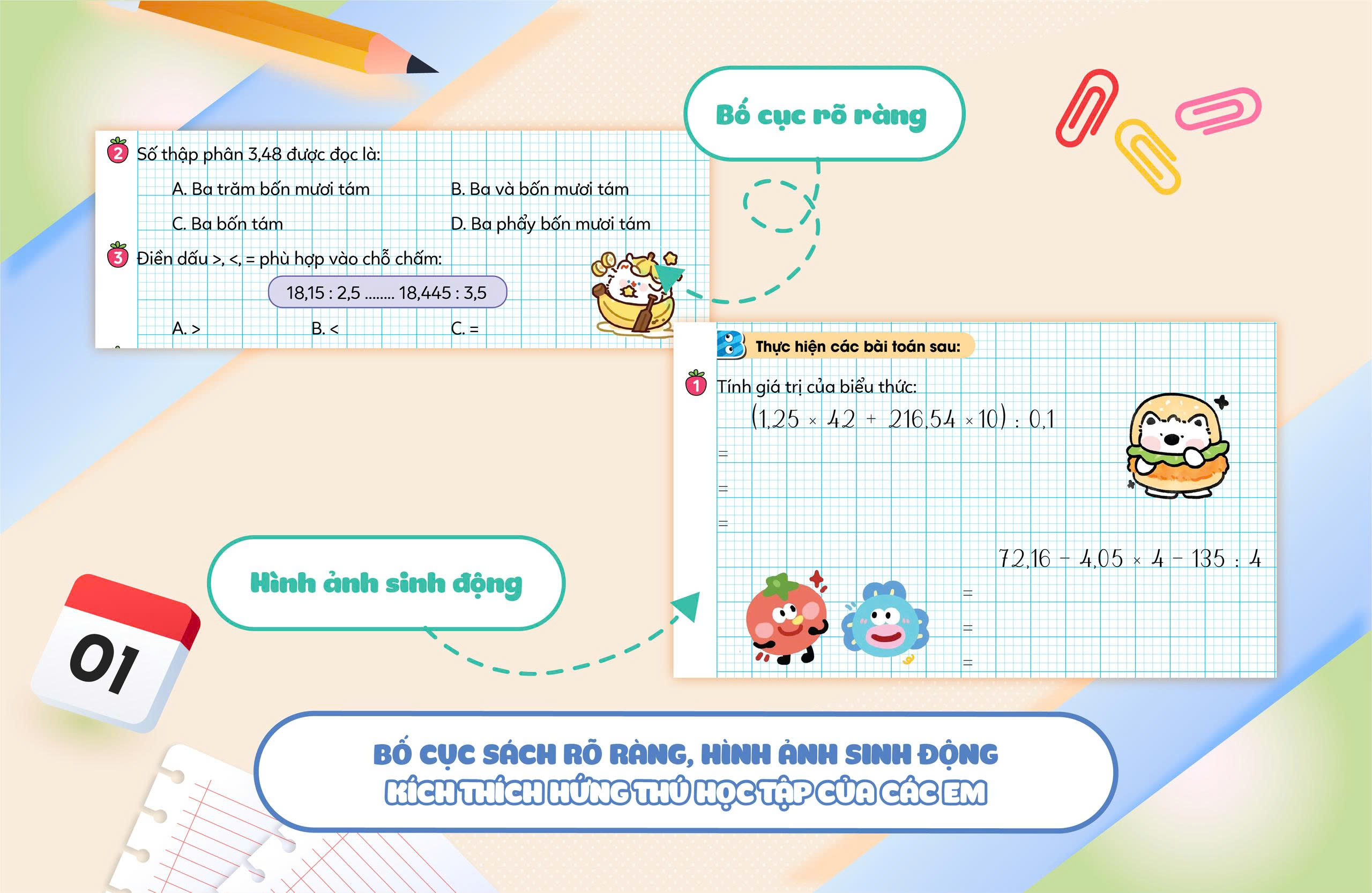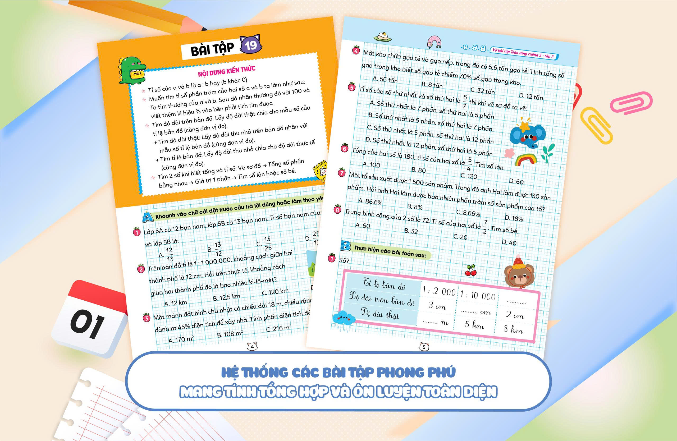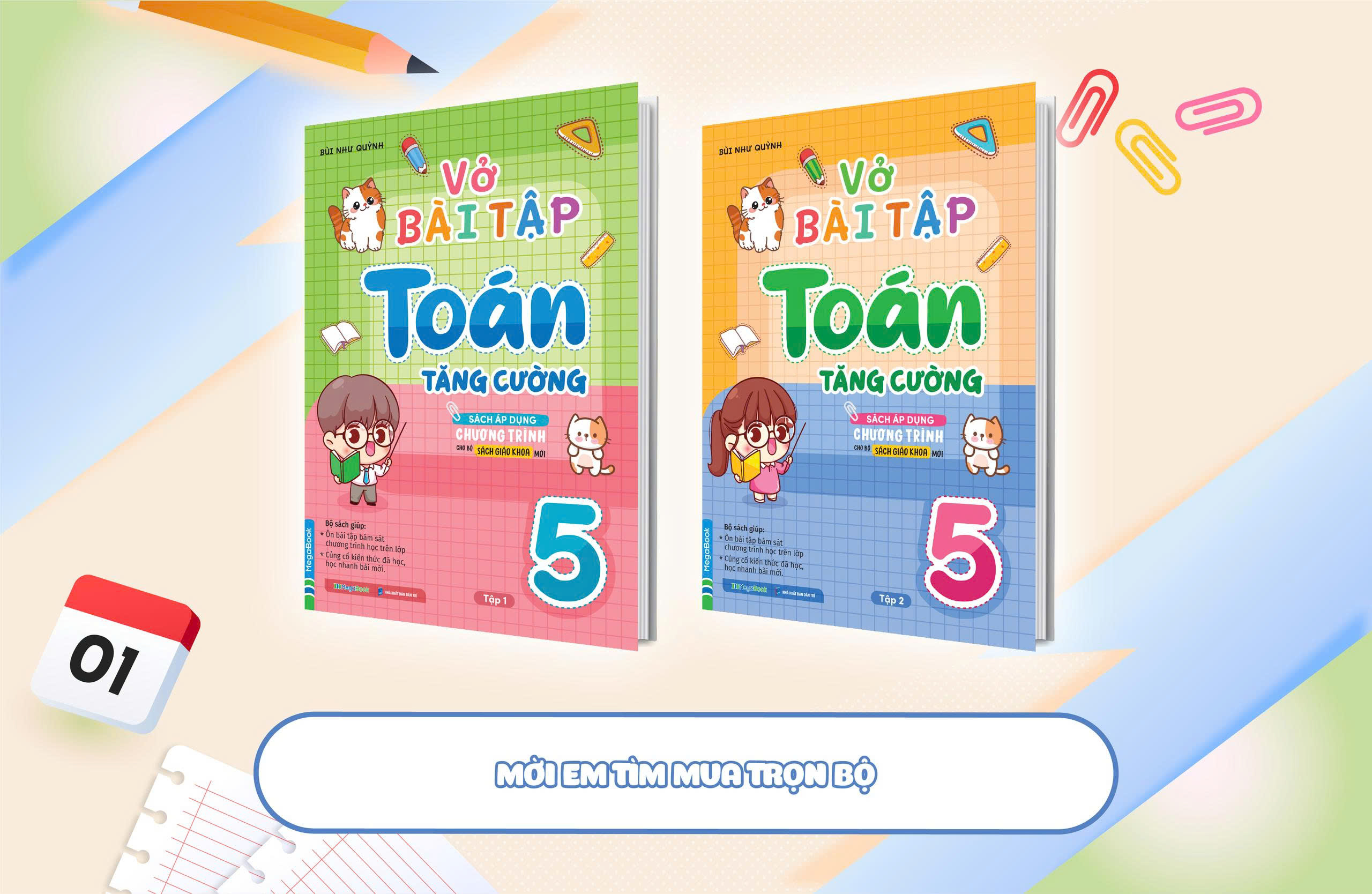 Vở bài tập Toán tăng cường lớp 5 tập 2 là tài liệu hữu ích giúp học sinh lớp 5 củng cố kiến thức Toán học một cách hiệu quả. Sách được biên soạn theo chương trình Giáo dục phổ thông mới của Bộ Giáo dục và Đào tạo. Cuốn sách này không chỉ cung cấp bài tập đa dạng mà còn bám sát chương trình học trên lớp. Bộ sách gồm tập 1 và tập 2, các em sẽ dễ dàng ôn tập và chuẩn bị cho các bài kiểm tra giữa kì và cuối kì. Đây thực sự là một người bạn đồng hành lý tưởng cho hành trình học toán của các em.